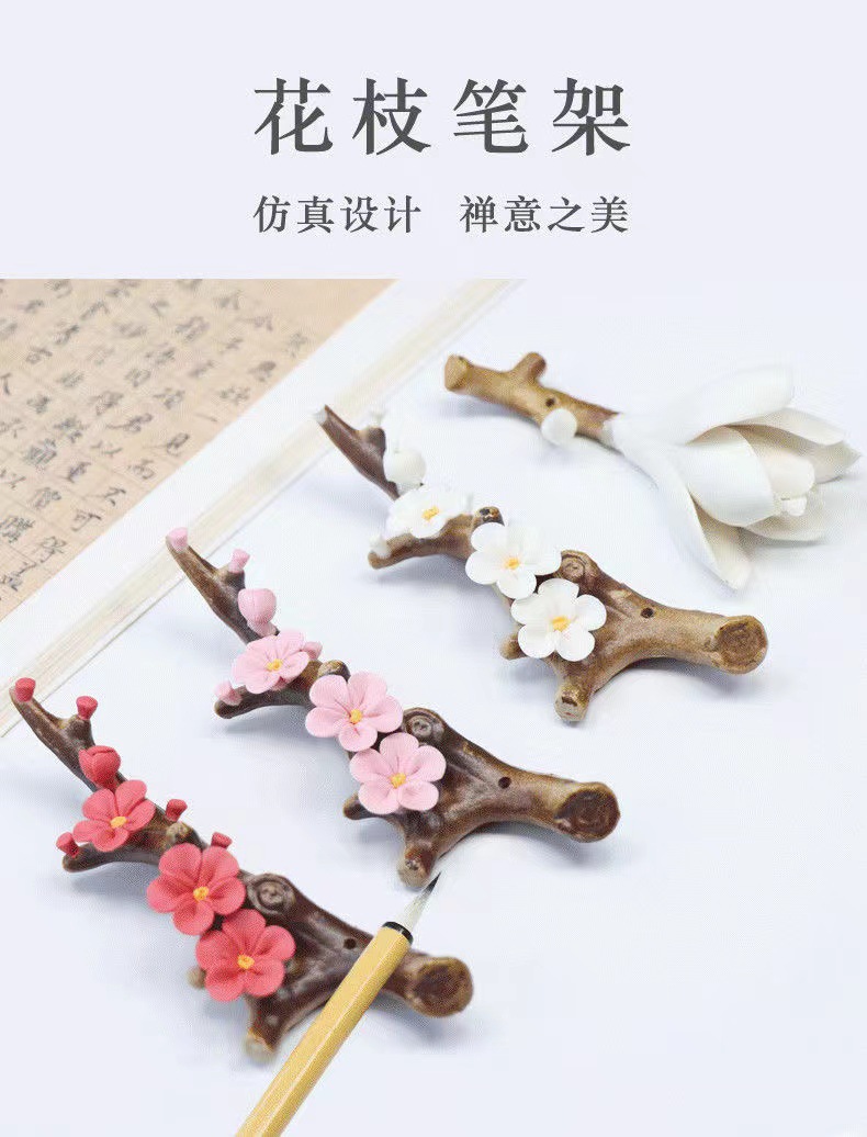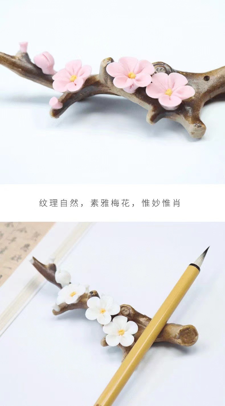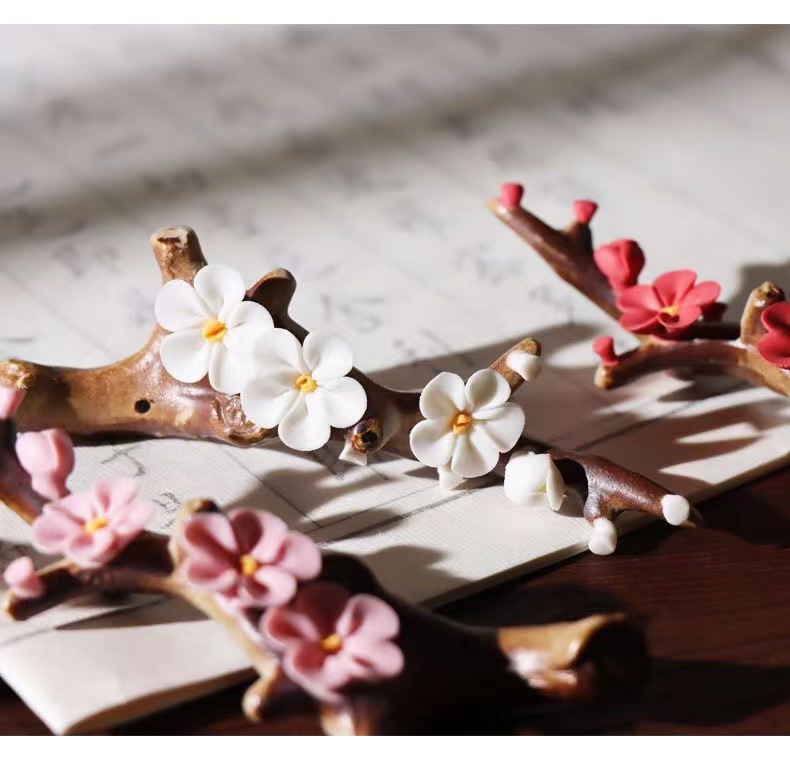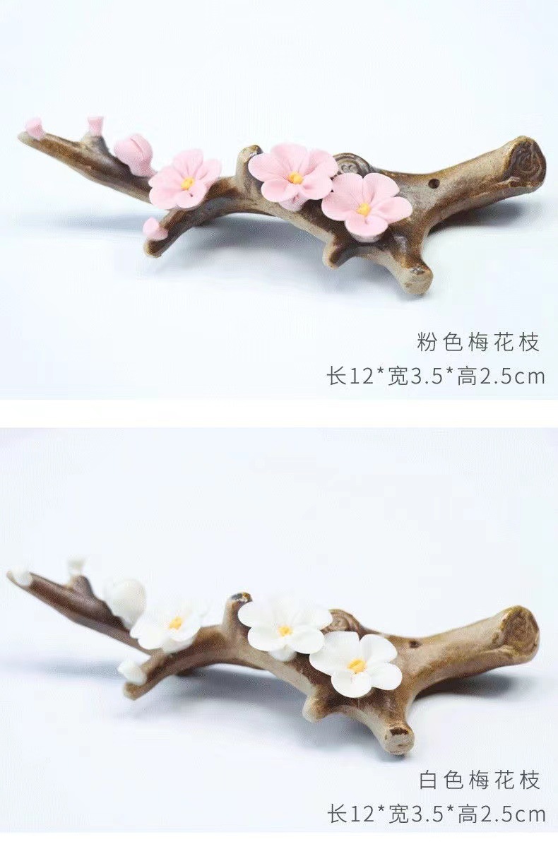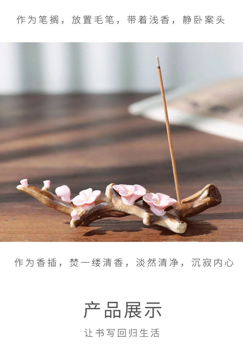 陶瓷手工捏花线香插香炉摆件梅花香座摆件创意假山笔托香托