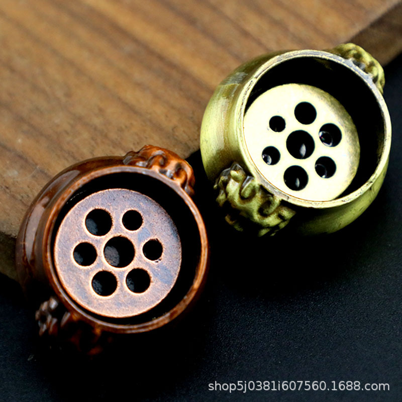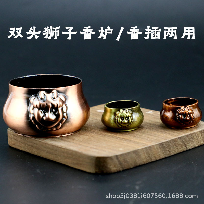 狮子头双耳七孔香插创意拇指铜狮耳炉迷你室内香炉香座香架禅意