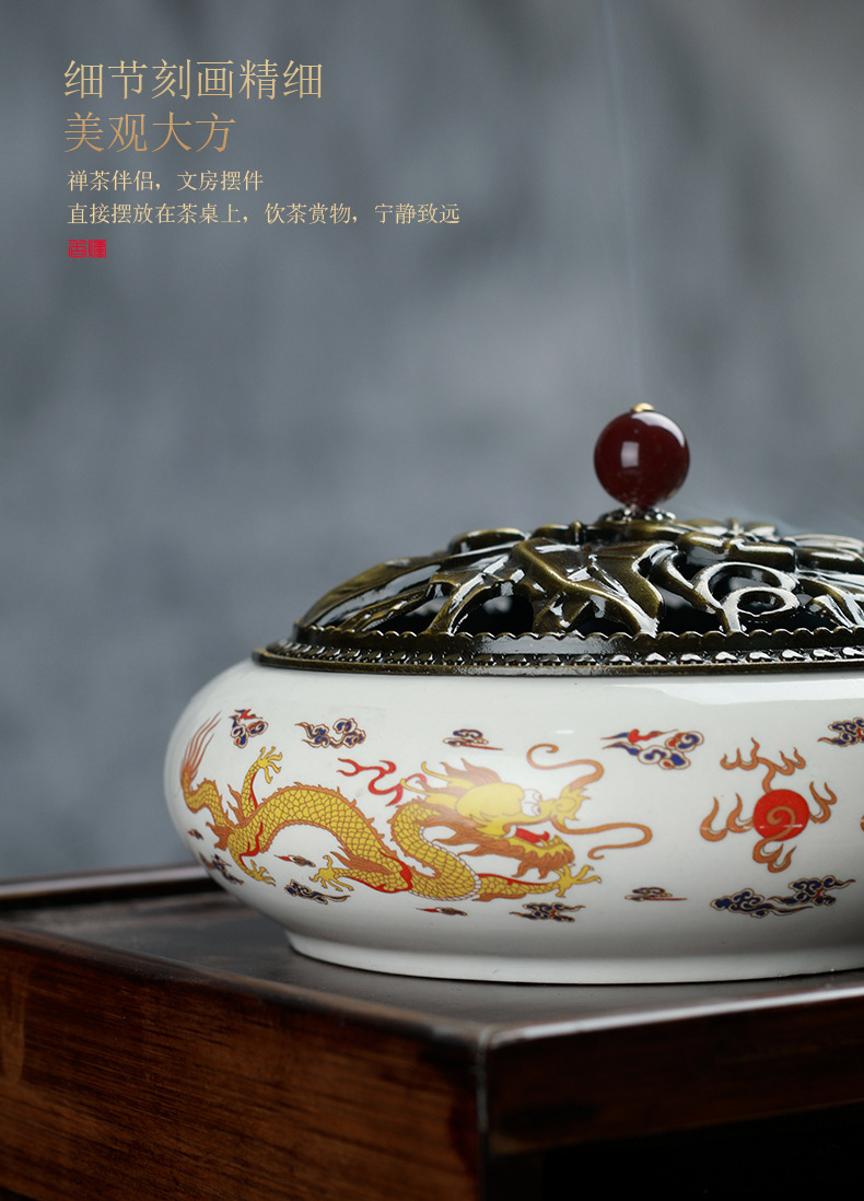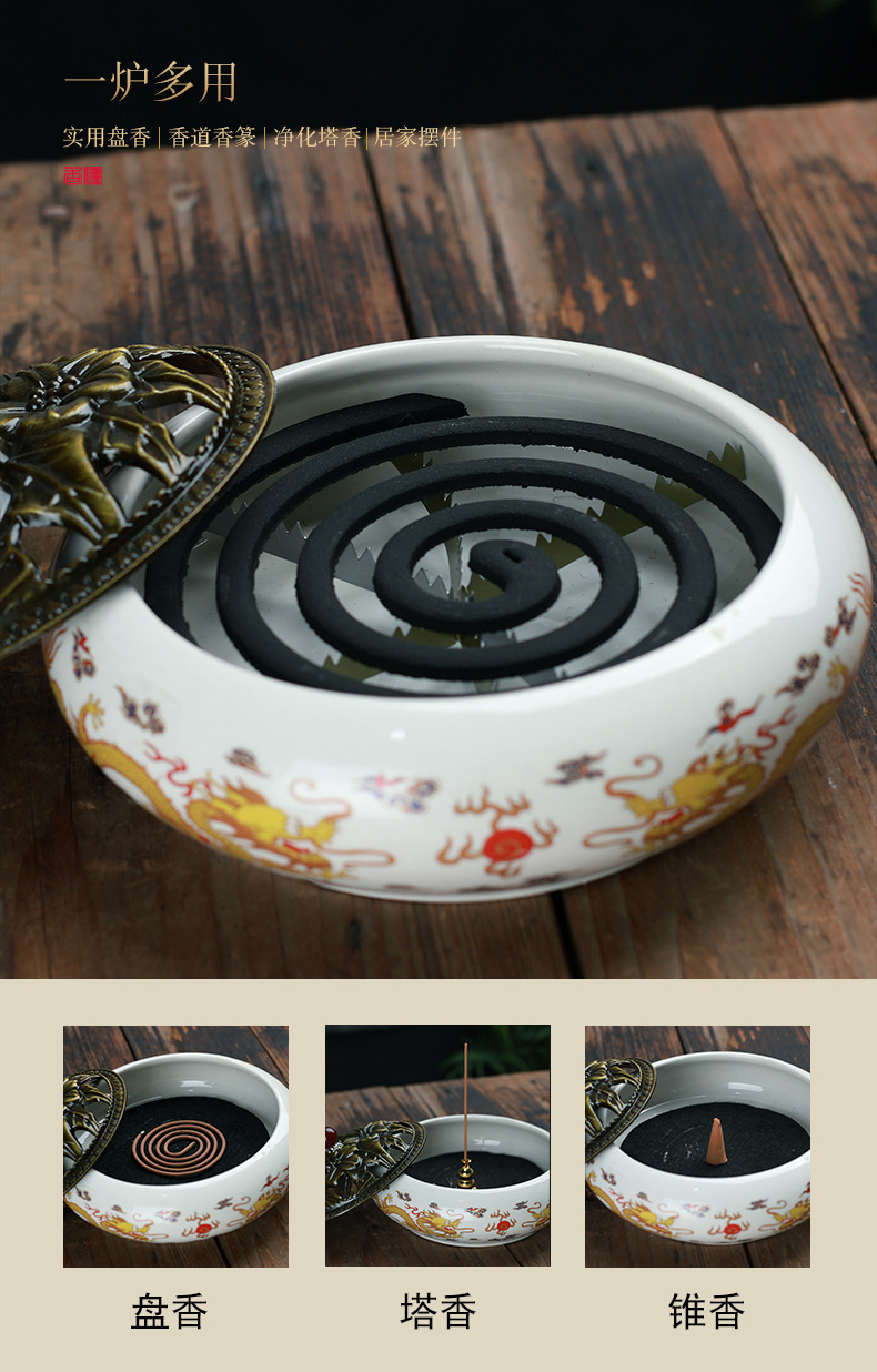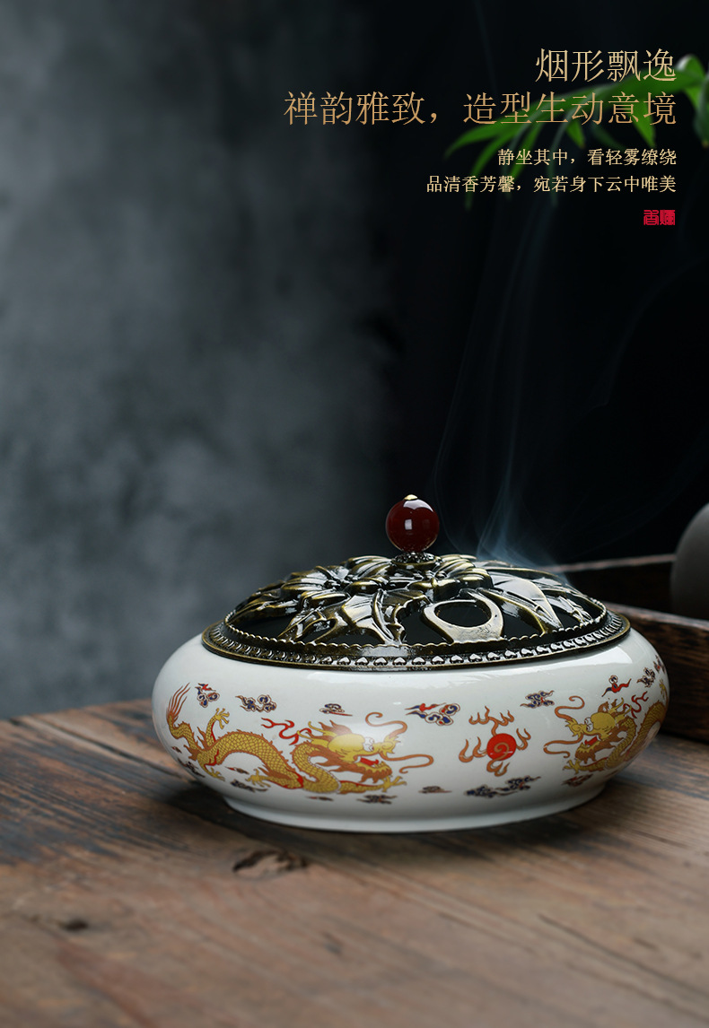 陶瓷大号蚊香炉创意檀香盒盘香炉室内带盖防火中式线香插香座摆件