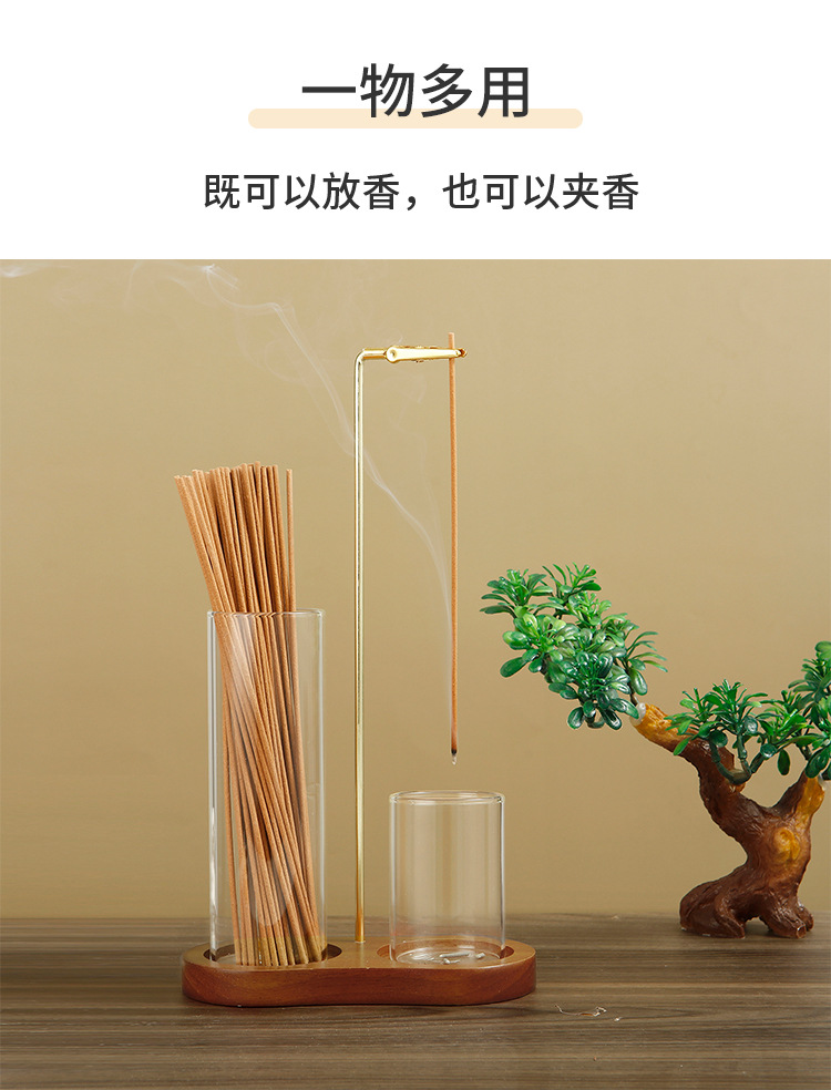 实木8字形香炉橡胶木玻璃香薰炉现代简约檀香沉香香插香夹线香筒