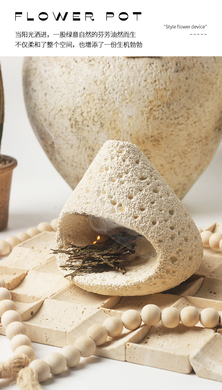 水泥材质艺术品黑色艺术侘寂风香插香座原创北欧复古香薰香托香盘