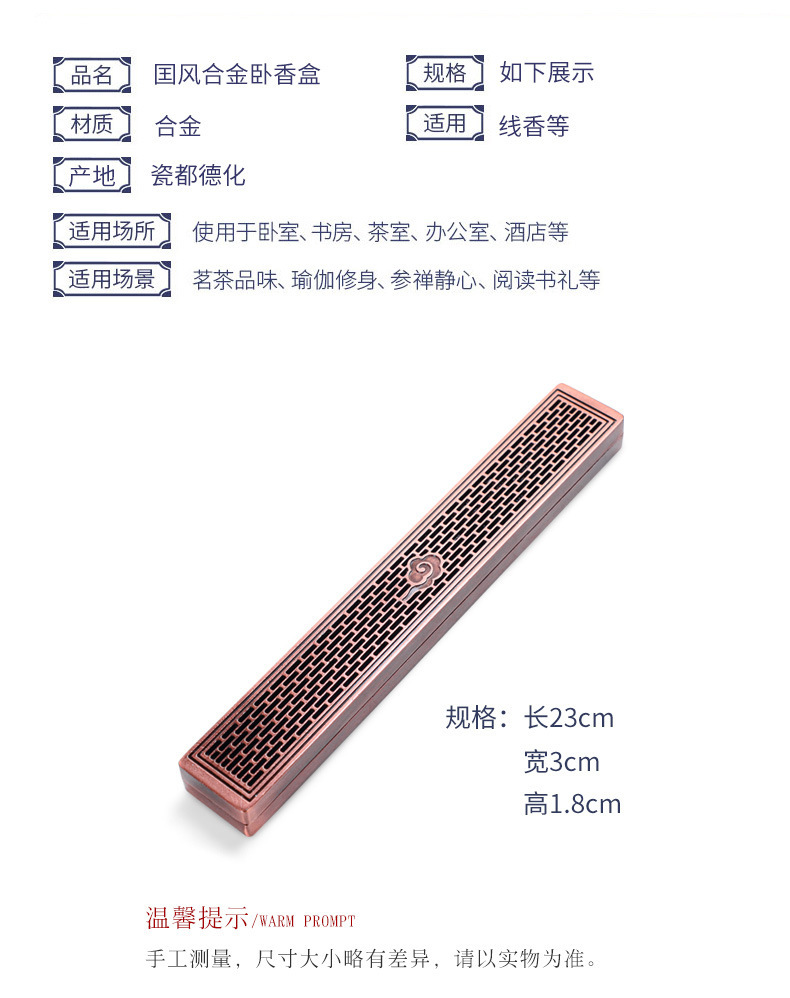 卧香盒家用室内线香炉线香底座香插沉香熏香炉檀香合金线香盒摆件