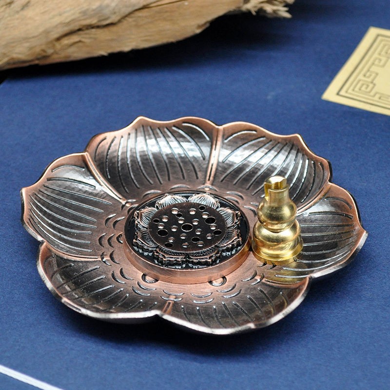 镀铜香插香炉家用室内金属托盘居室檀香盘香夹线香小葫芦香道摆件