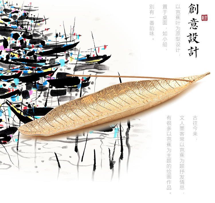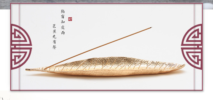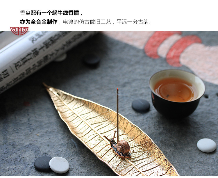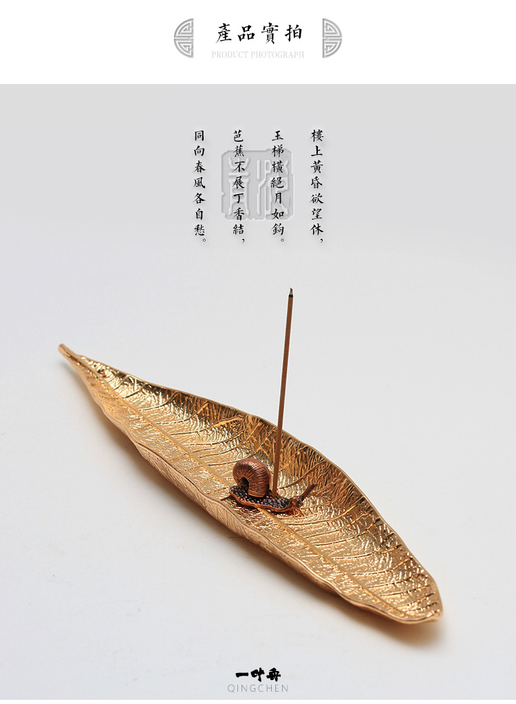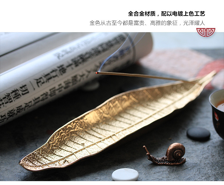 仿古铜合金菩提树叶线香炉香插家用室内茶道卧香炉大号禅意熏香炉