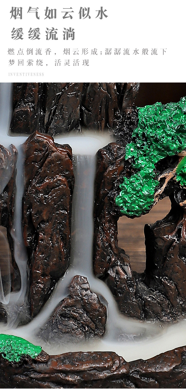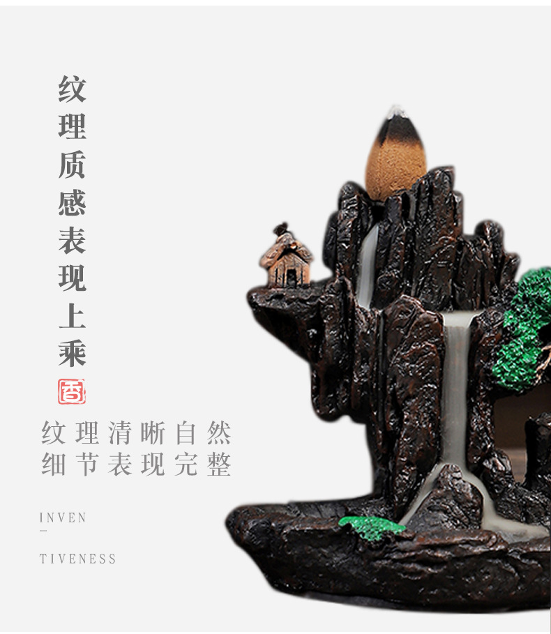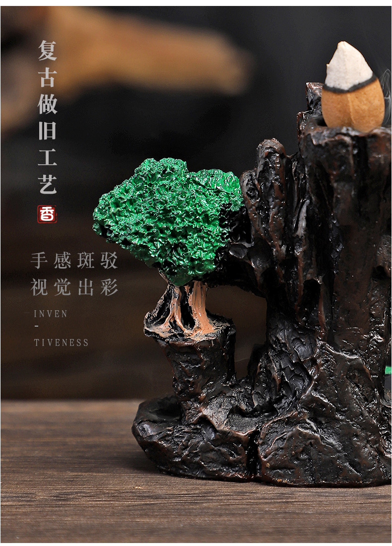 跨境外贸树脂复古创意倒流香炉家用玄关摆件造景檀香炉假山龙型炉