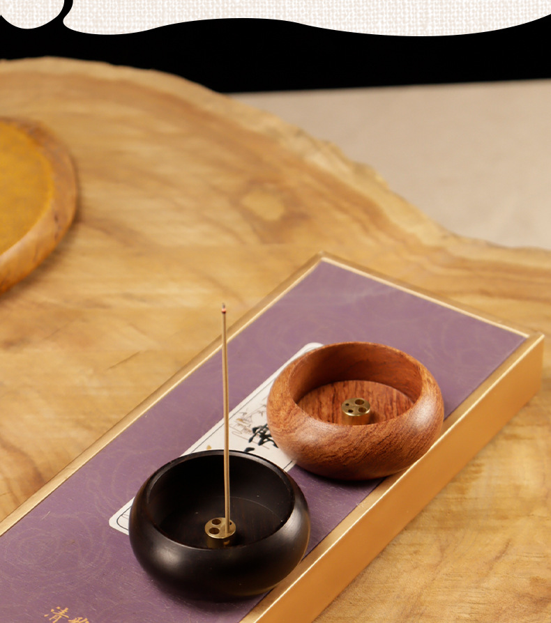 黑檀木多孔香插 迷你小香插香座室内香薰便捷沉香圆形线香炉便携