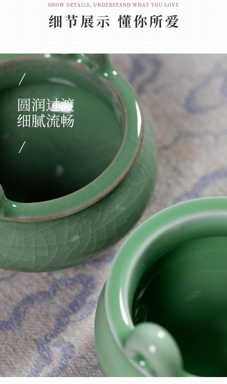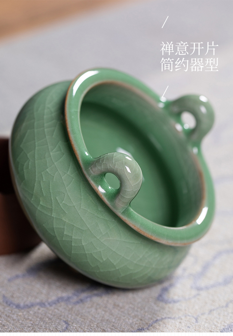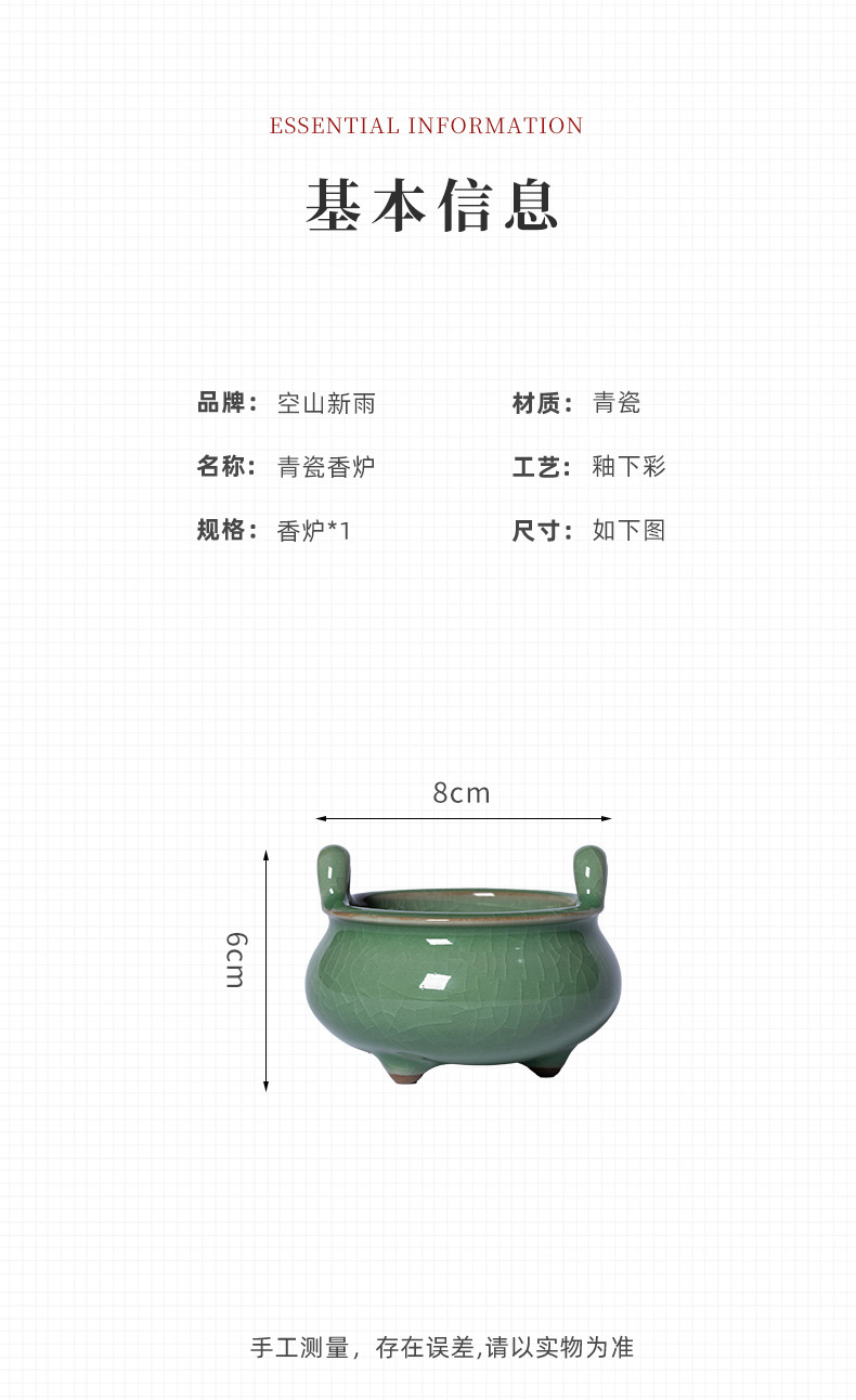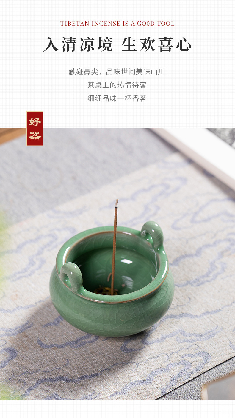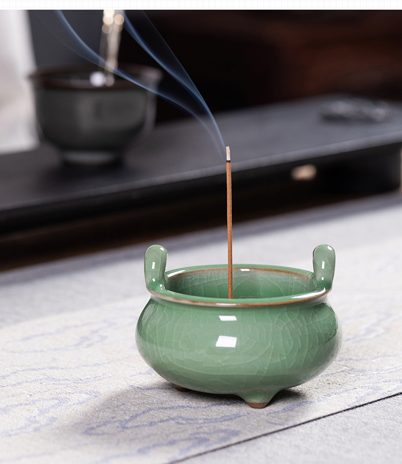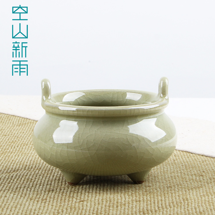 空山新雨 龙泉青瓷仿寺庙双耳陶瓷线香熏炉 佛庙佛具陶瓷檀香香炉