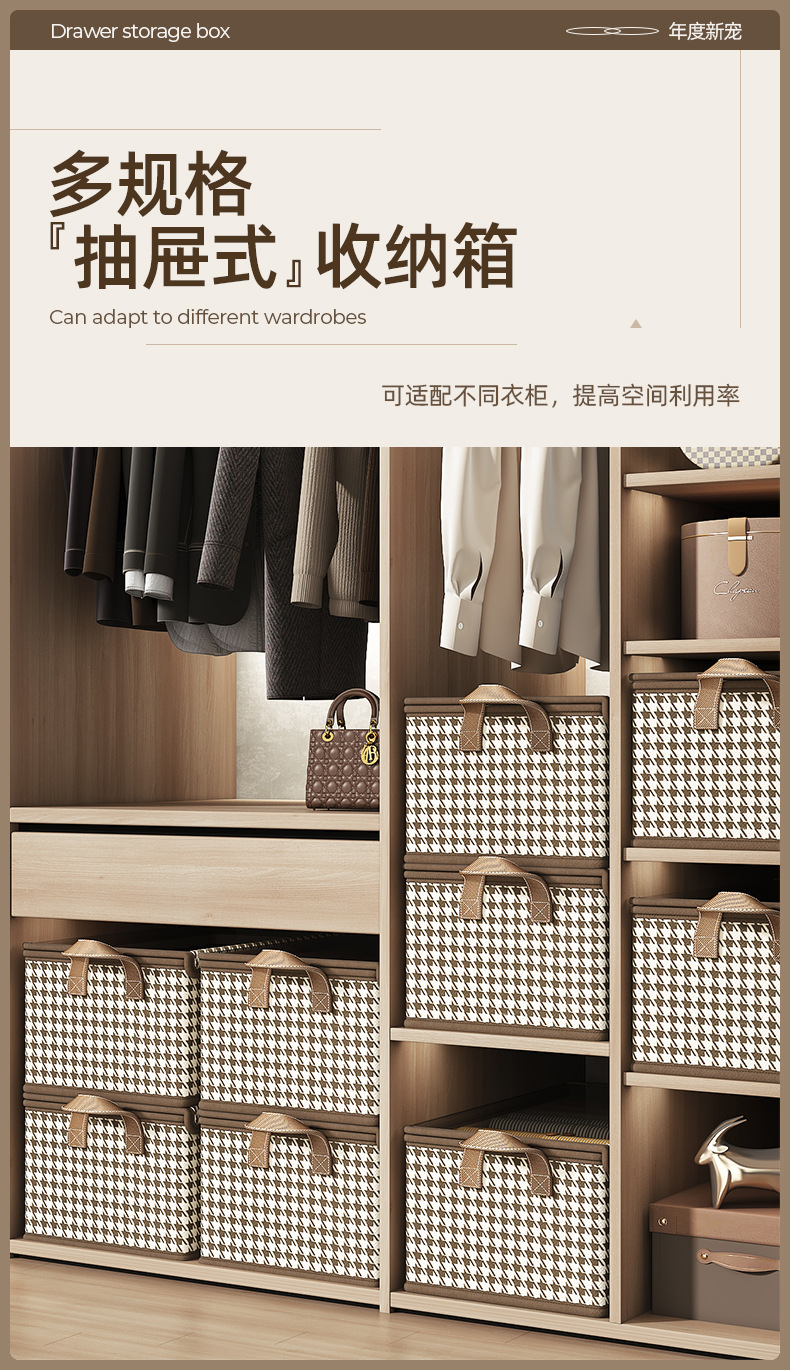 千鸟格收纳箱装衣服裤子储物筐家用衣柜分层收纳神器抽屉式整理盒