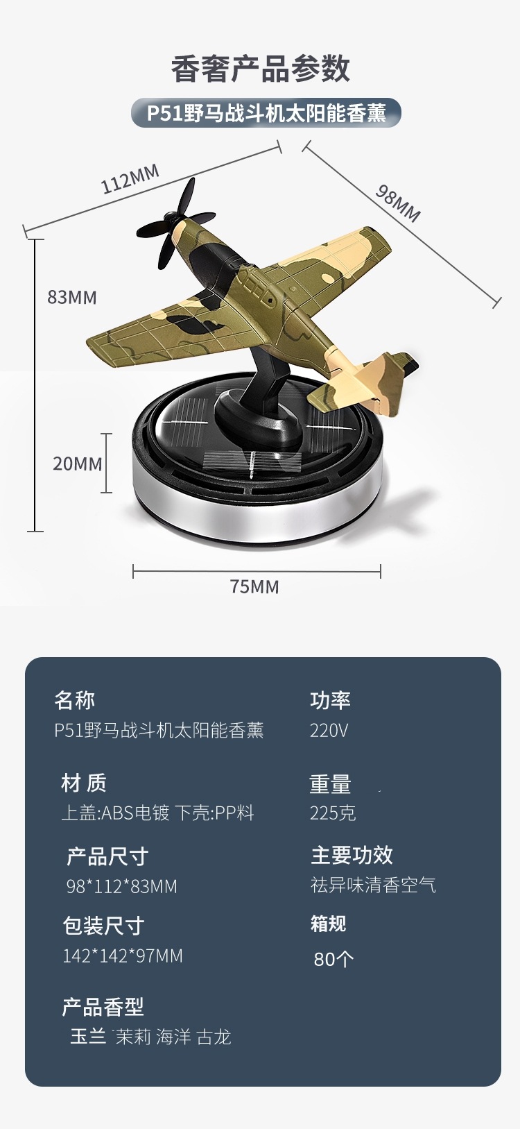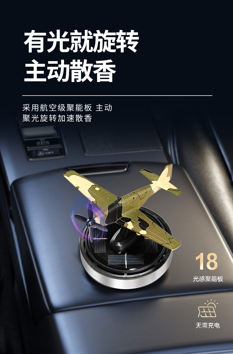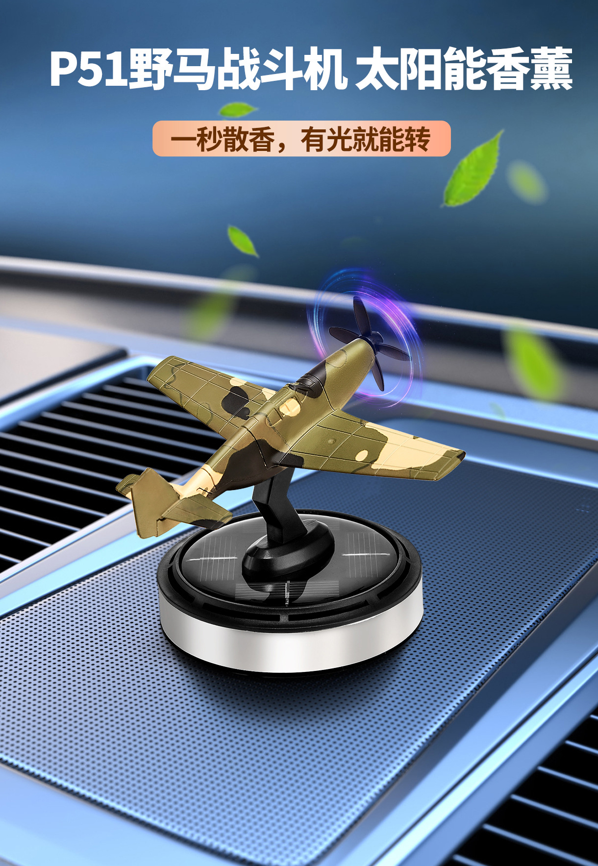 太阳能飞机P51野马车载香薰遇光旋转散香除味个性汽车用品摆件厂