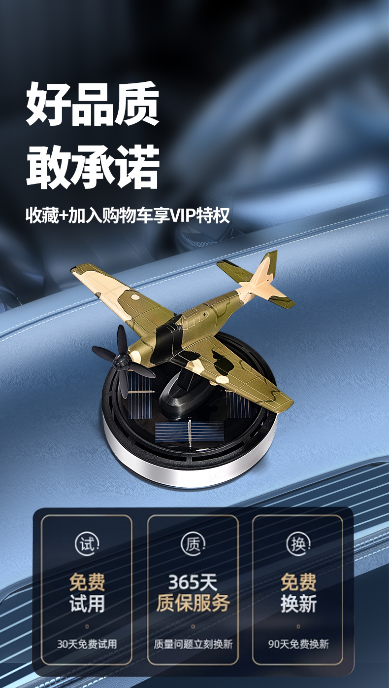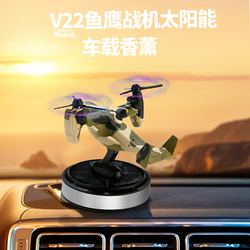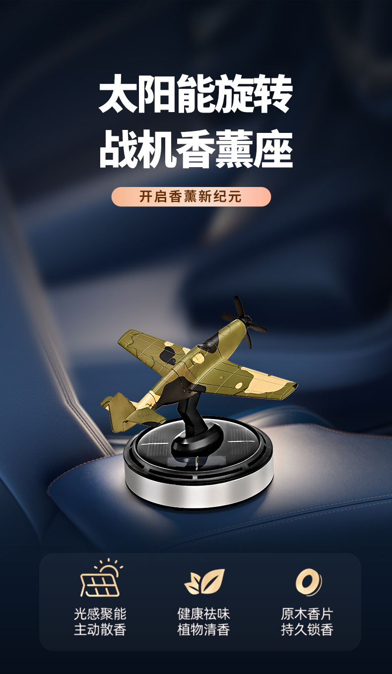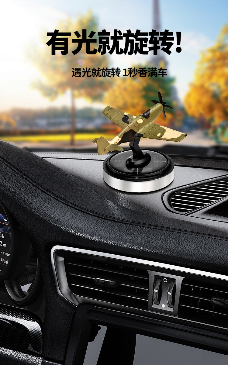 太阳能飞机P51野马车载香薰遇光旋转散香除味个性汽车用品摆件厂