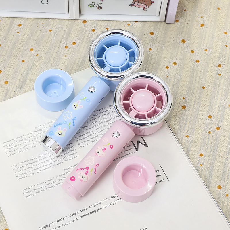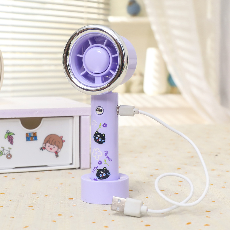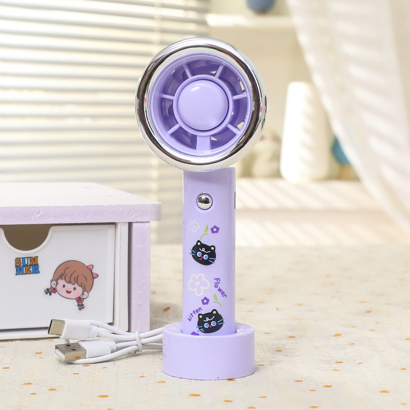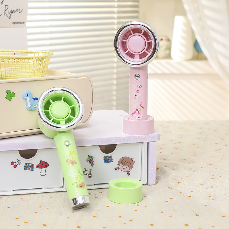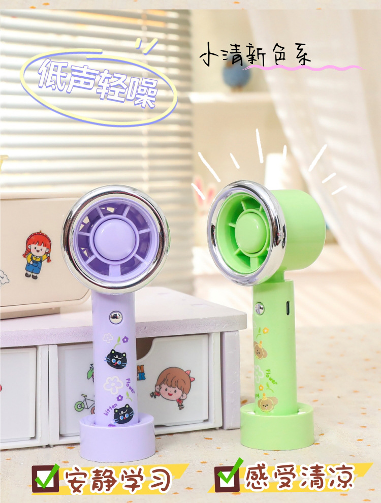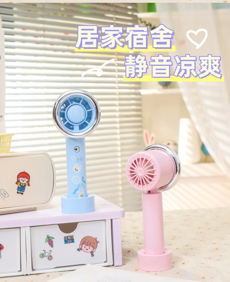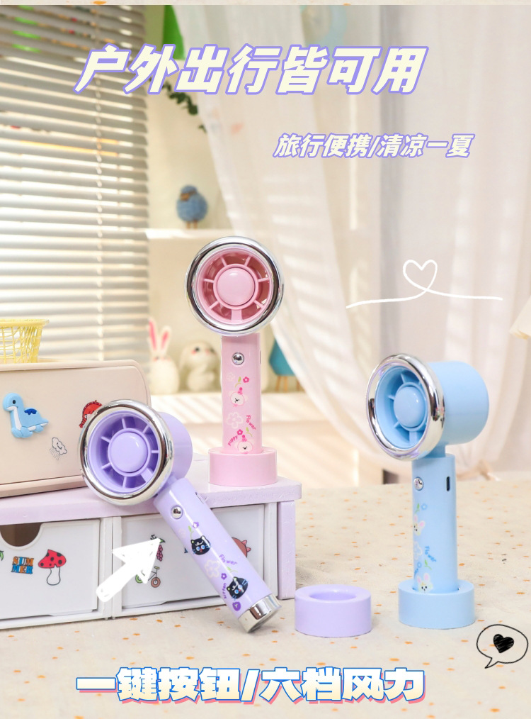 小清新印花手柄带底座迷你小风扇 涡轮式六档风力学生便携电风扇