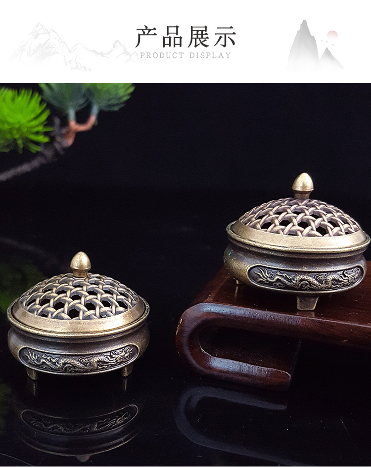 工厂直销仿古合金网格龙凤小香炉创意香插家用房间室外檀香沉香塔