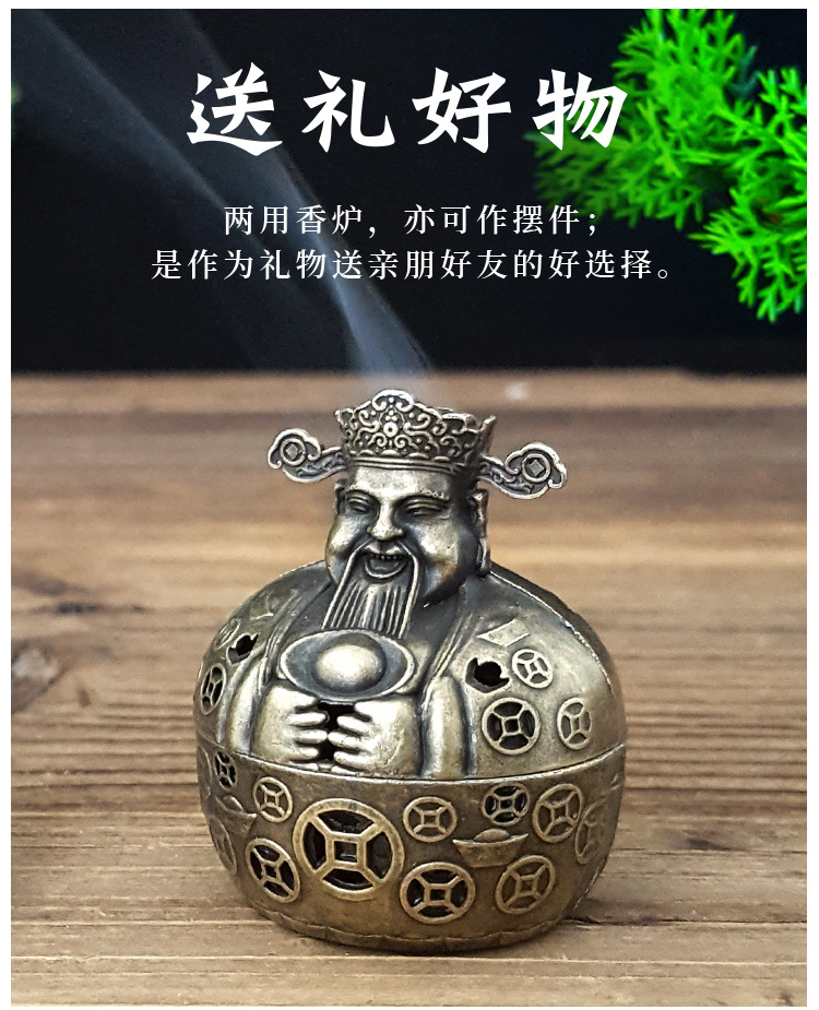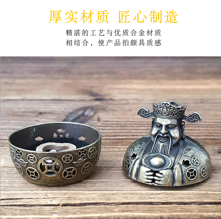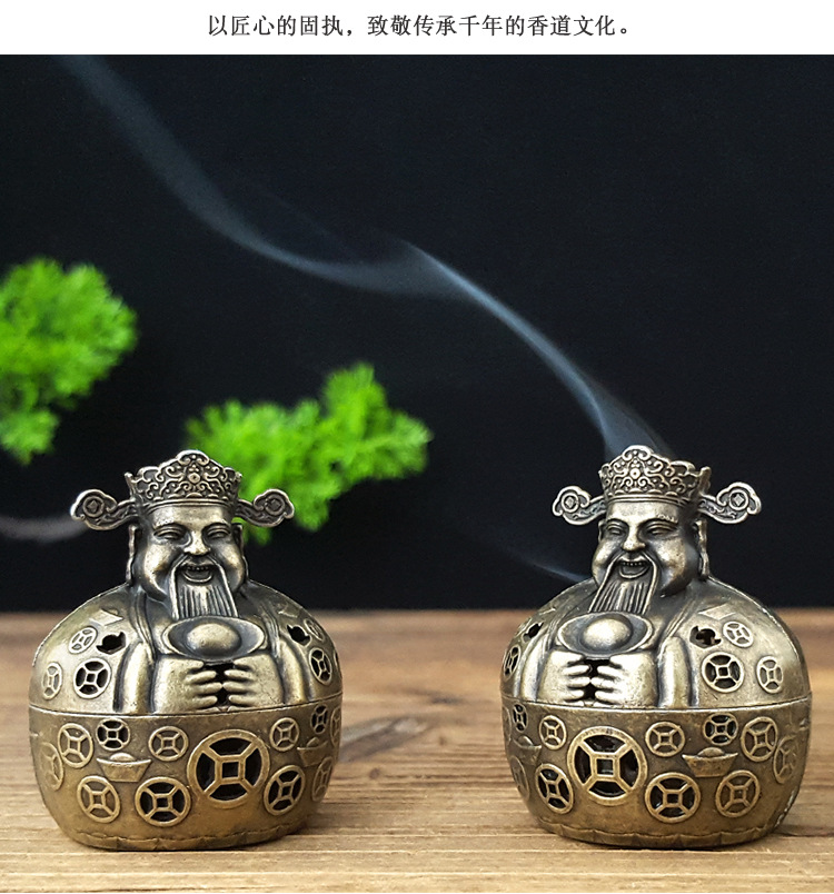工厂创意财神爷香炉家用室内线香盘香塔香盘香复古香薰炉摆件送礼