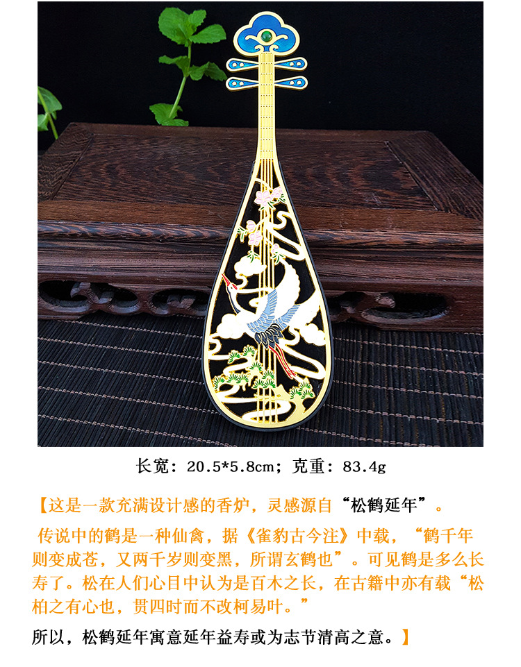 厂家直销合金松鹤延年琵琶香炉 创意线香盘香塔香熏香炉香道配件