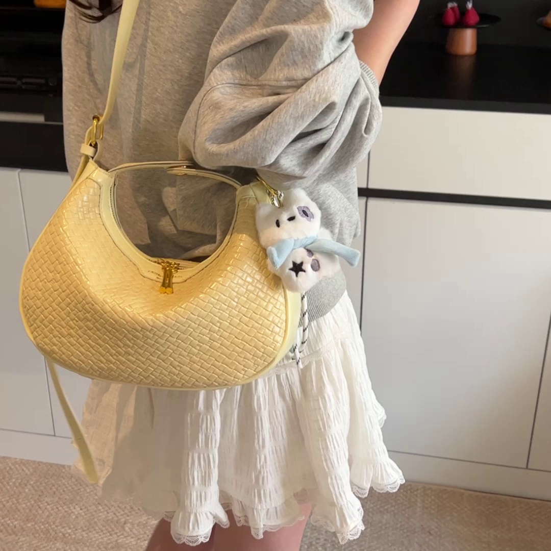 简约百搭上班通勤编织包新款时尚斜挎饺子包潮流女包0216