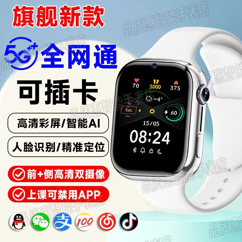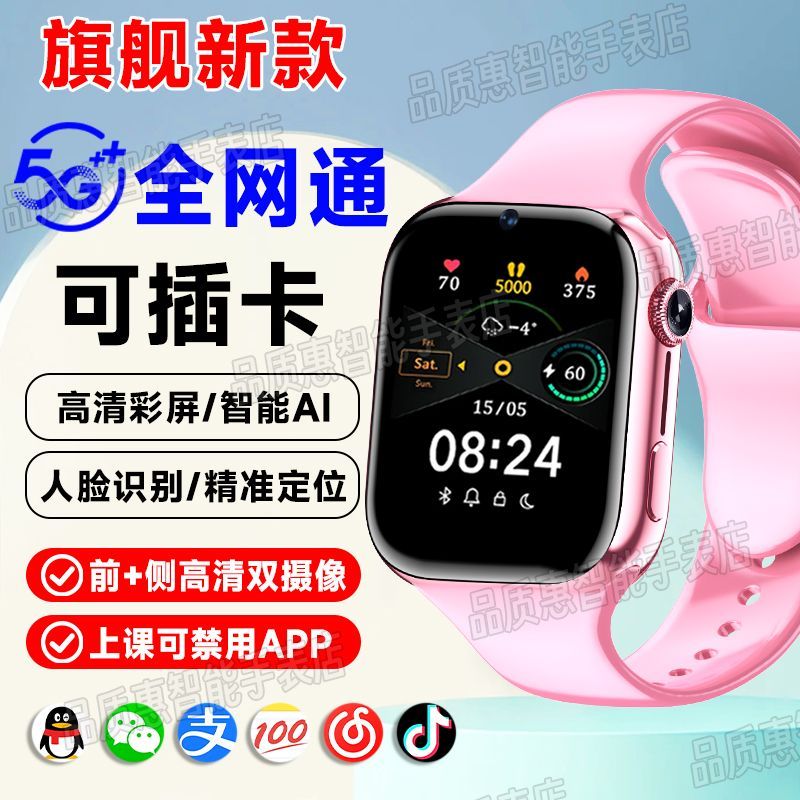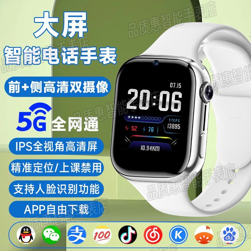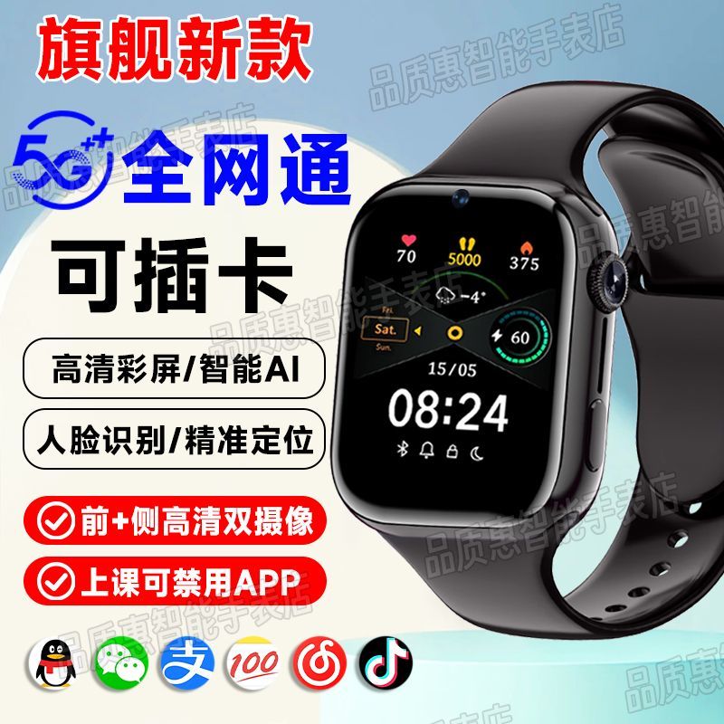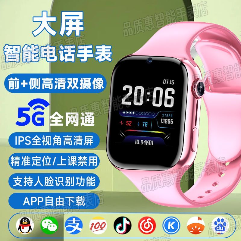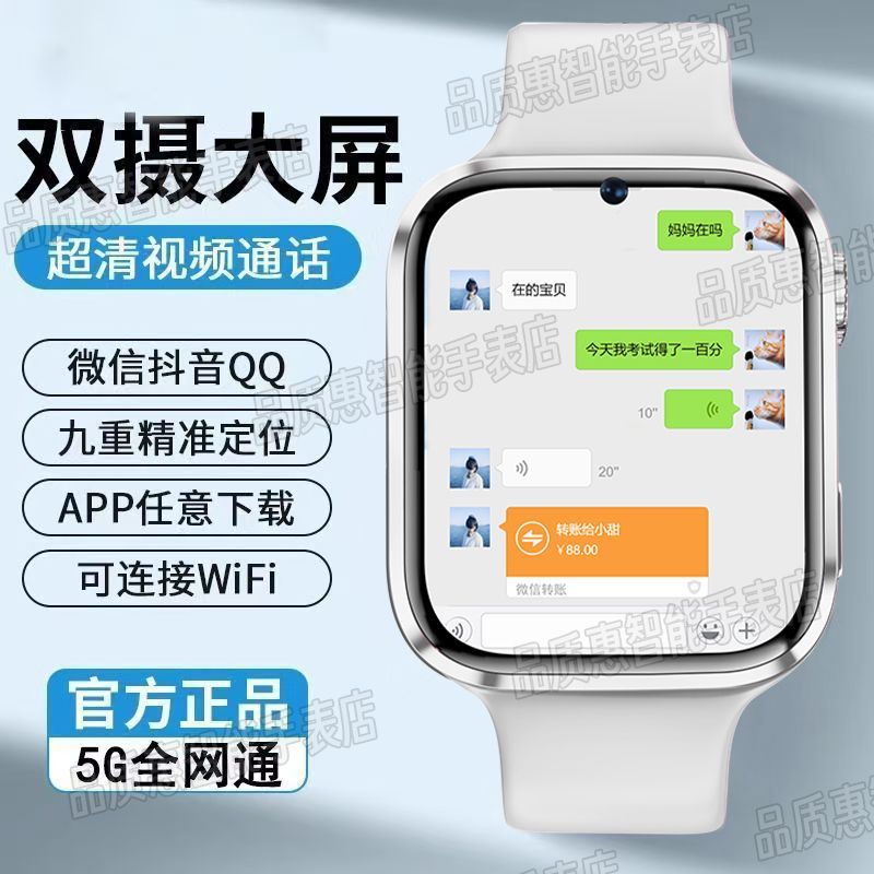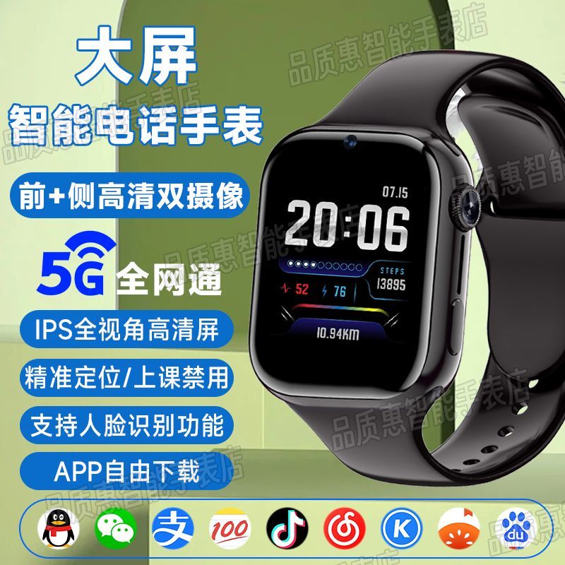 双摄像头电话手表蜂窝可插卡5G全网通wifi多功能智能手表成人学生