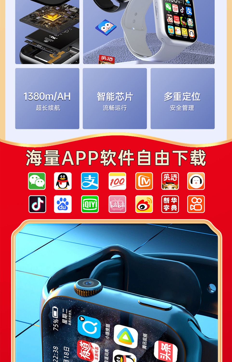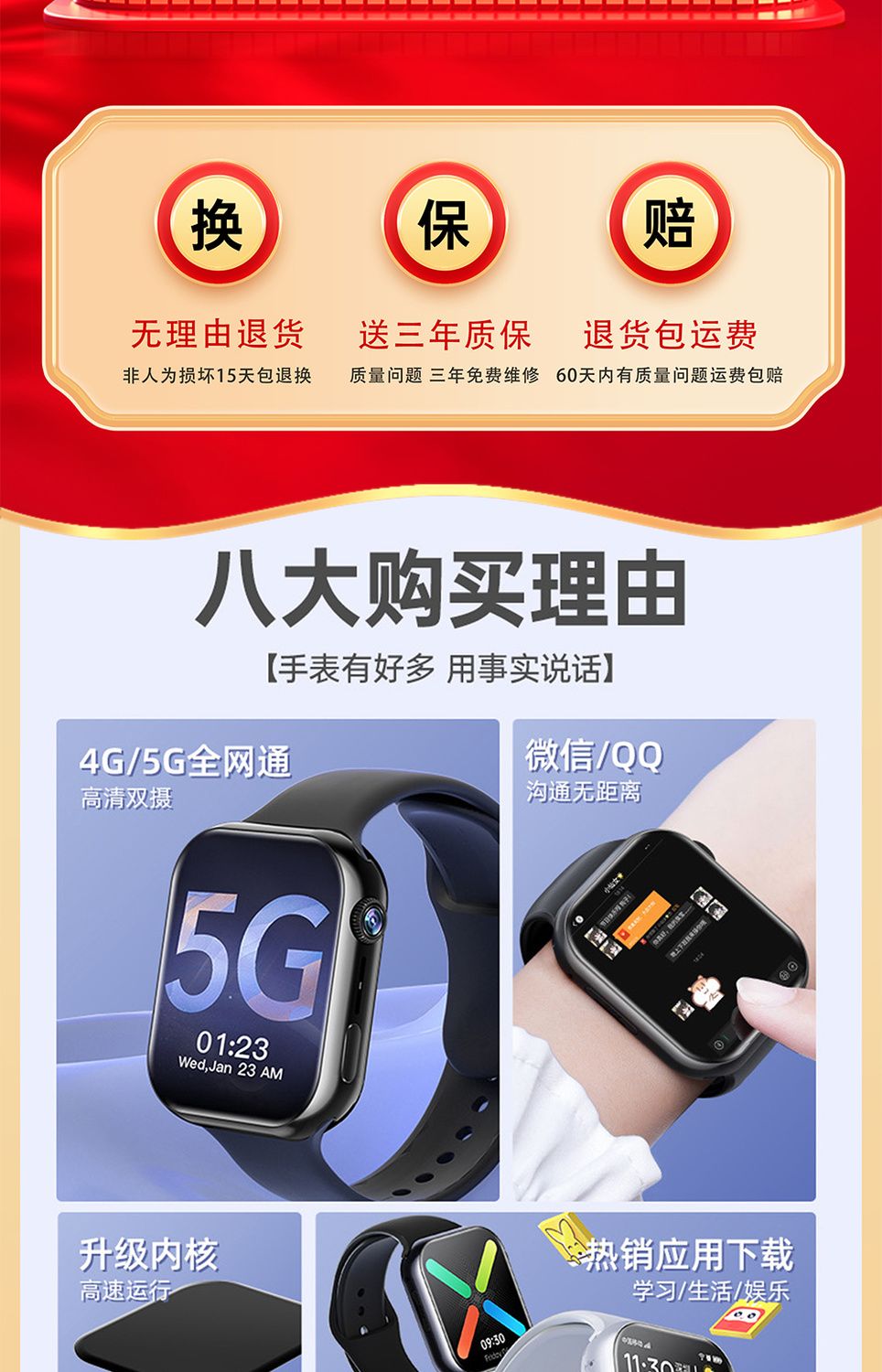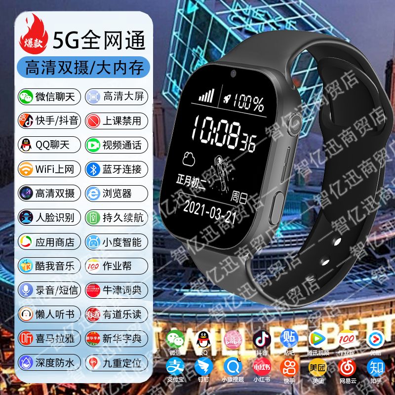 5G智能手表可插卡wifi自由下载中小学生儿童电话手表视频定位双摄