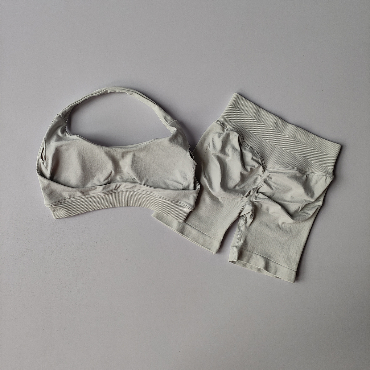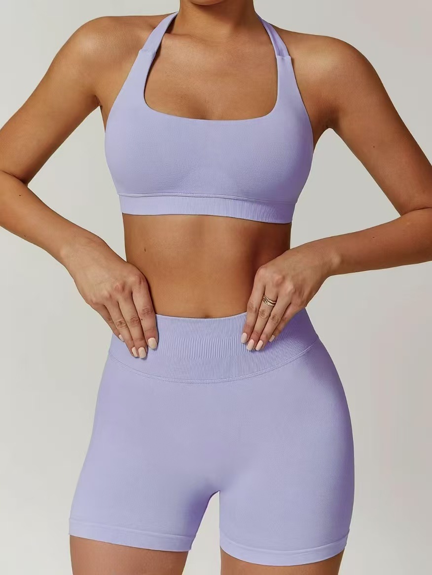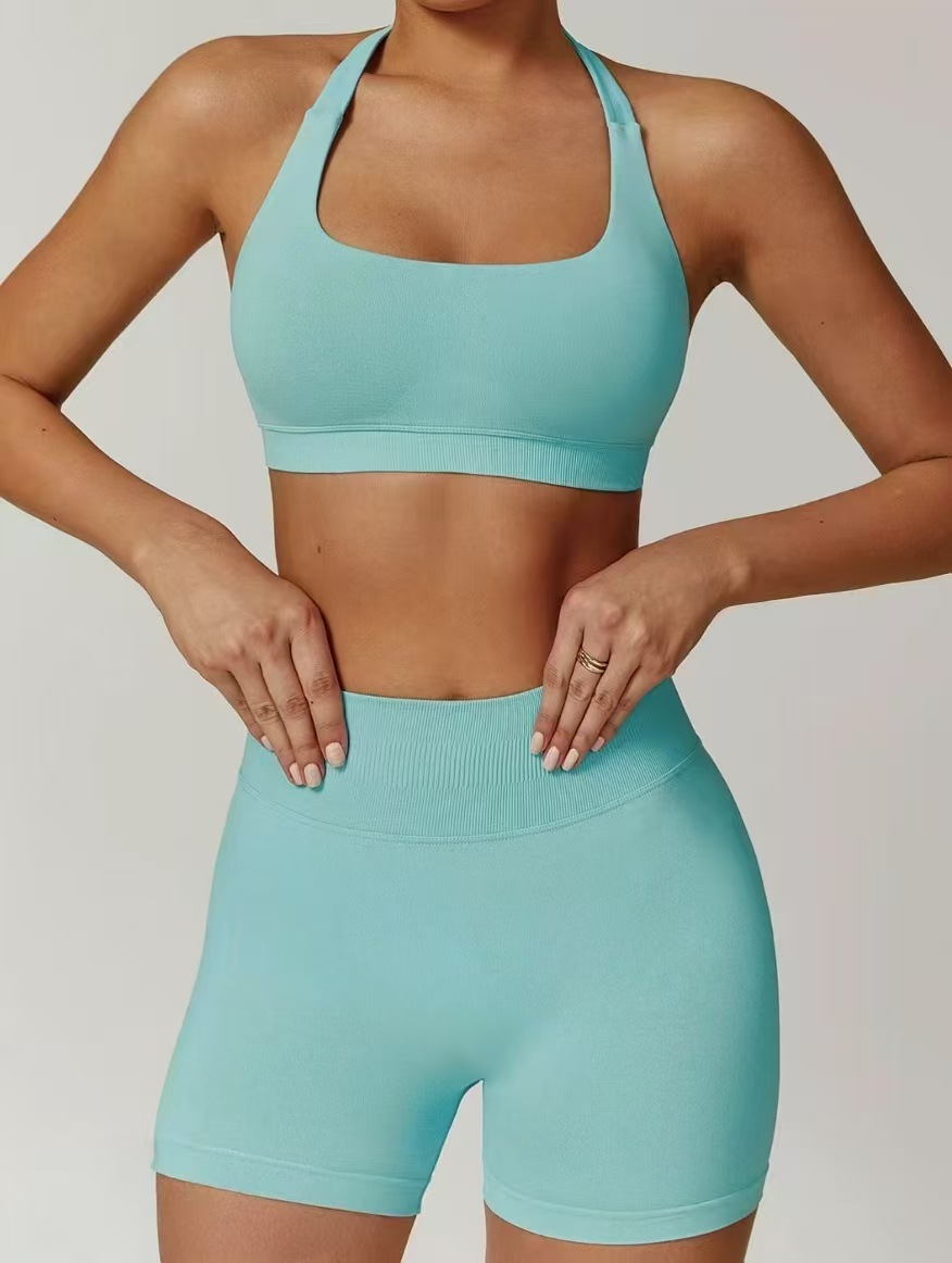 欧美跨境挂脖瑜珈套装女高腰瑜伽服套装紧身百搭健身短裤运动套装