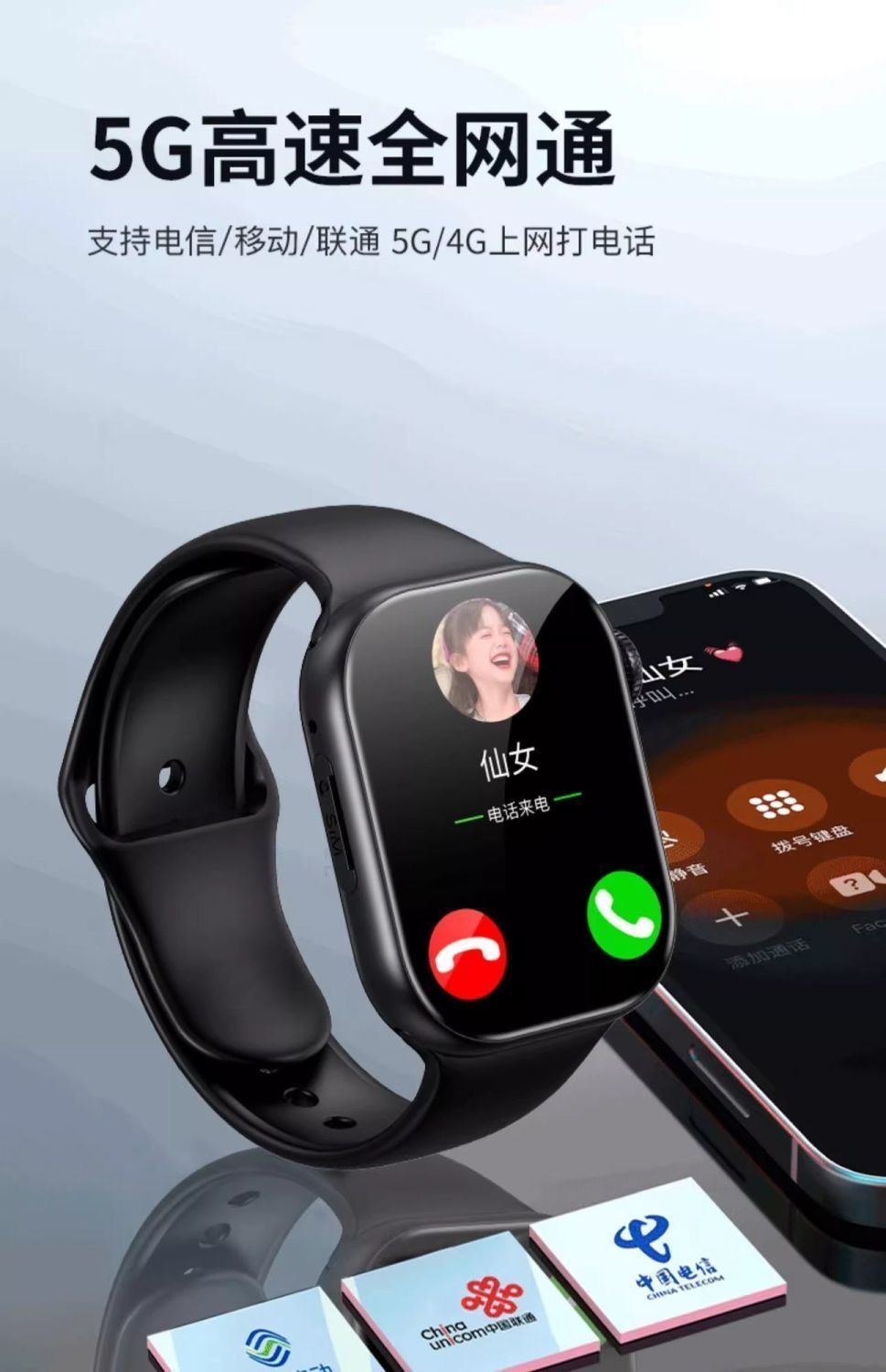 5G全网通智能电话手表插卡WiFi下载黑科技高中小学生儿童电话手表