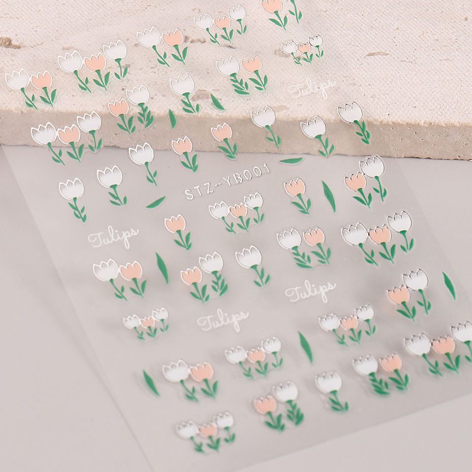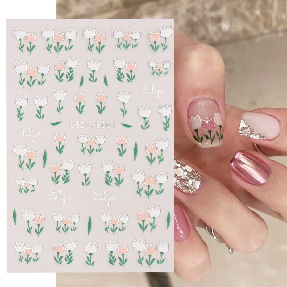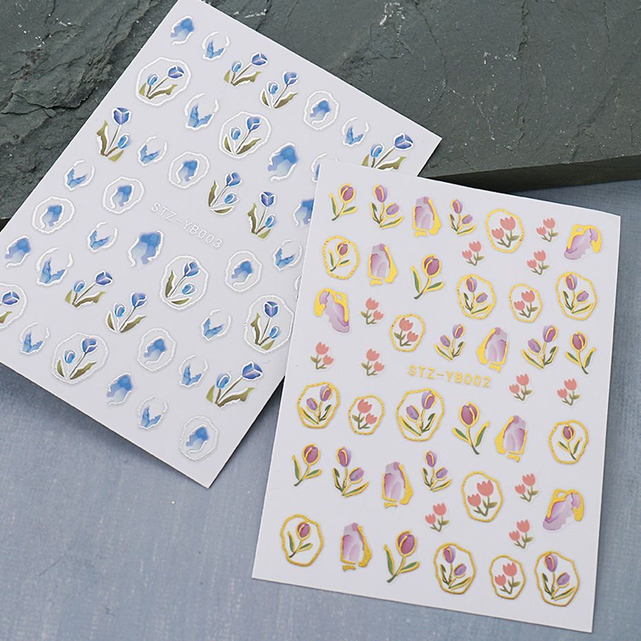 网红春夏爆款郁金香美甲贴纸日系小清新蓝色郁金香花朵指甲贴花