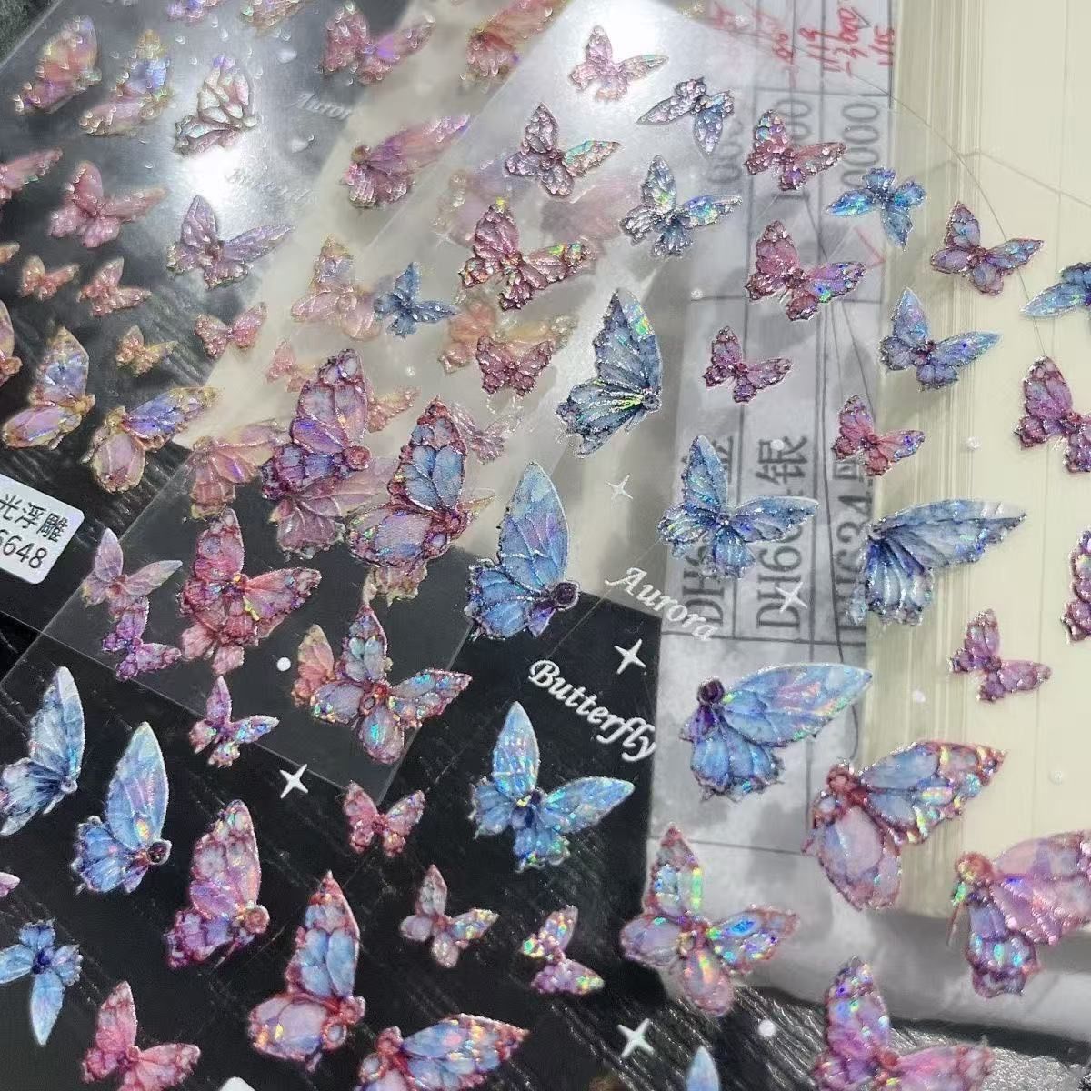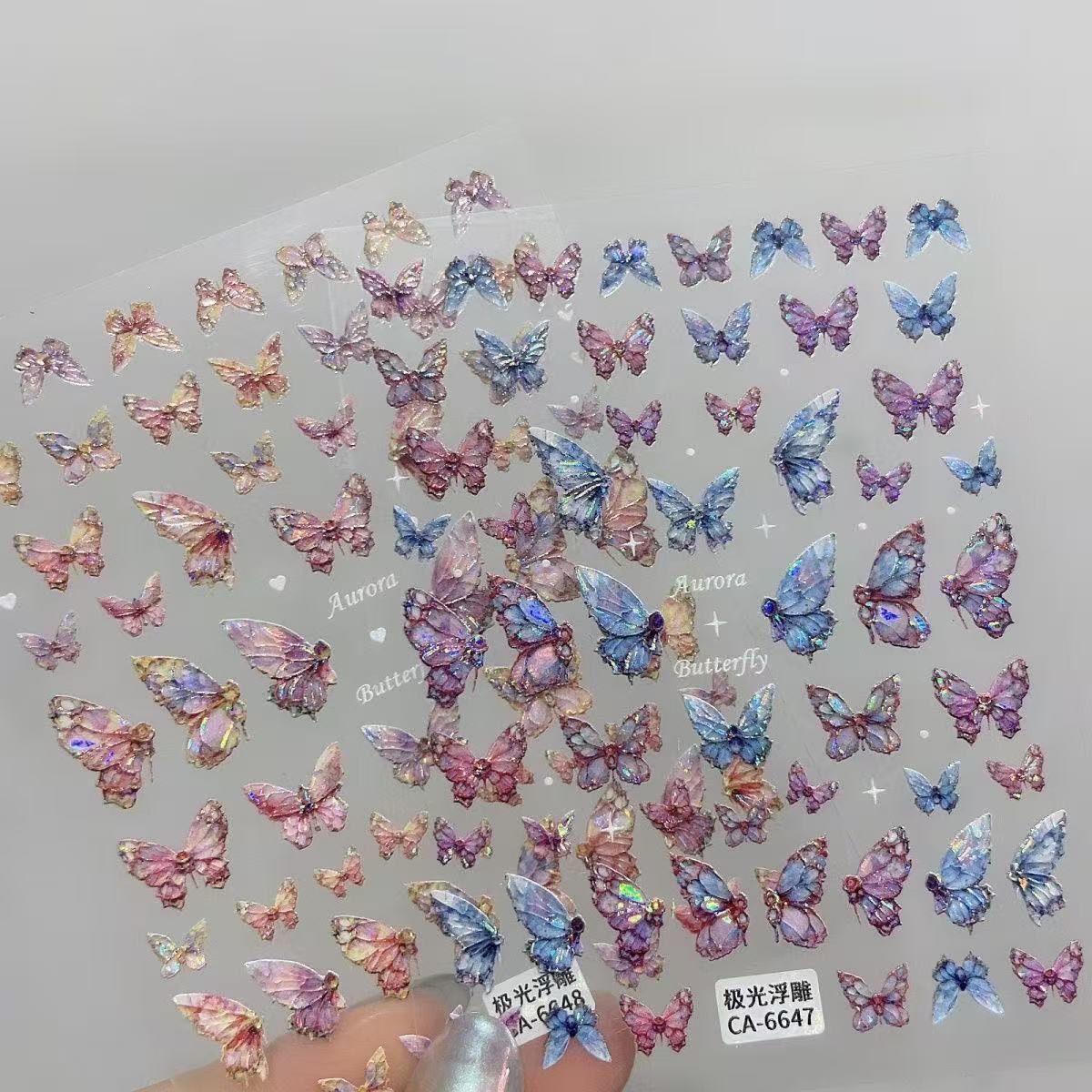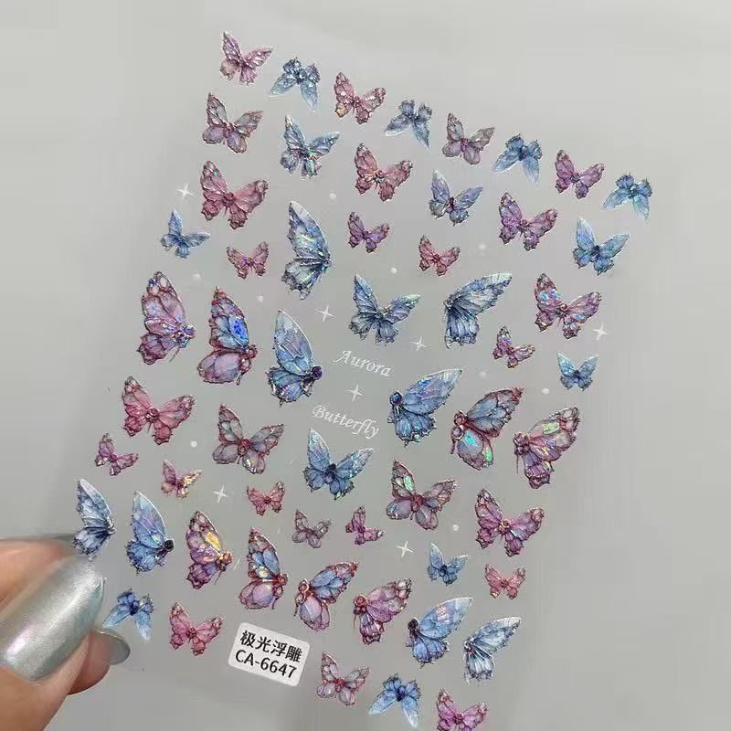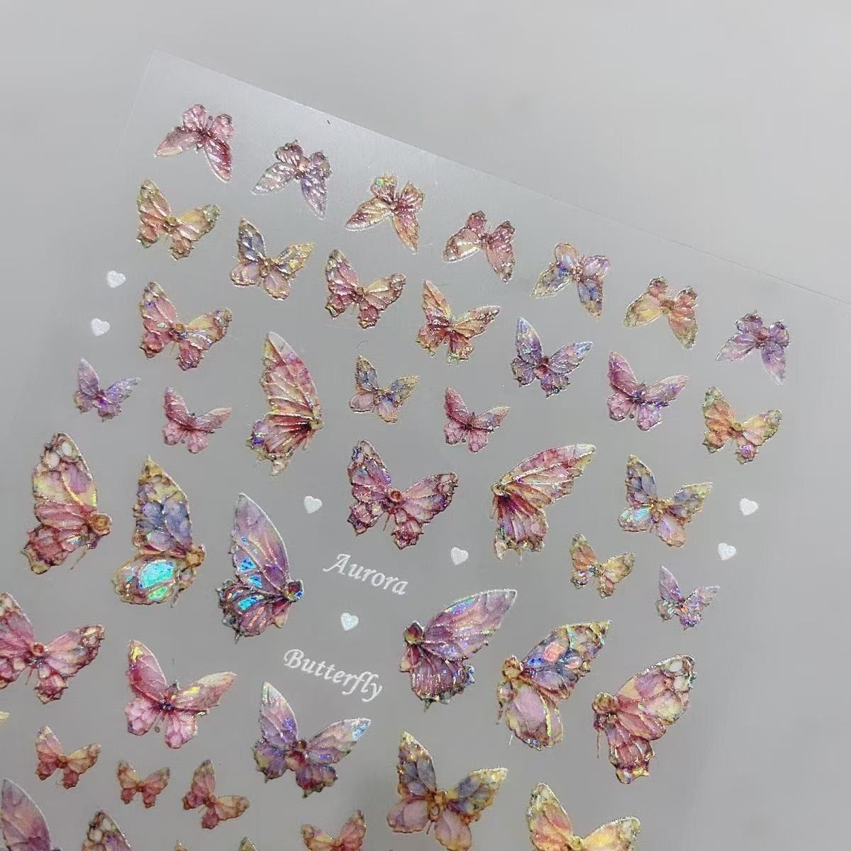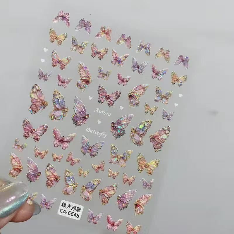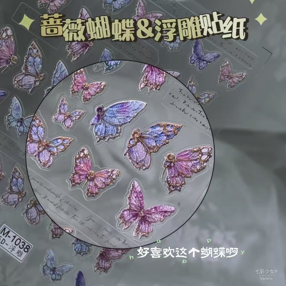 贝壳光珠光宝气蔷薇蝴蝶美甲贴纸翩然蝴蝶可爱灵动蝴蝶美甲贴