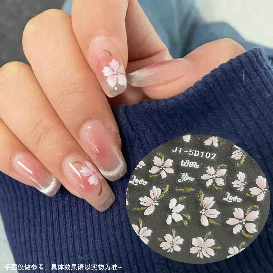 新款山茶花5d浮雕美甲贴纸立体小清新冰花手绘立体美甲花花饰品贴