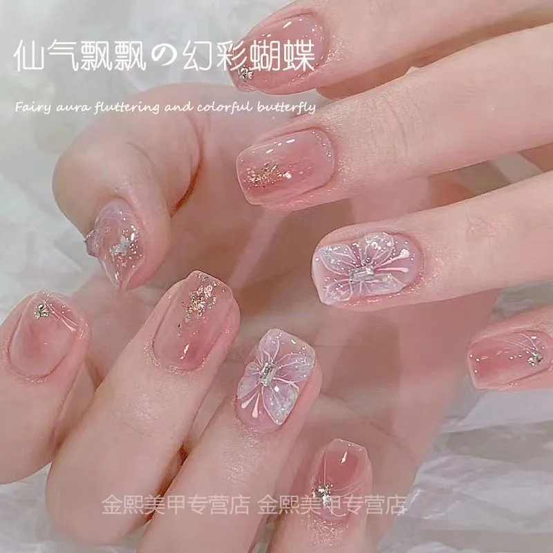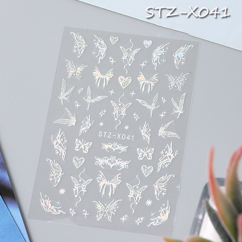 梦幻蝴蝶美甲贴纸极光幻彩人鱼尾蝴蝶星芒薄韧背胶防水指甲贴