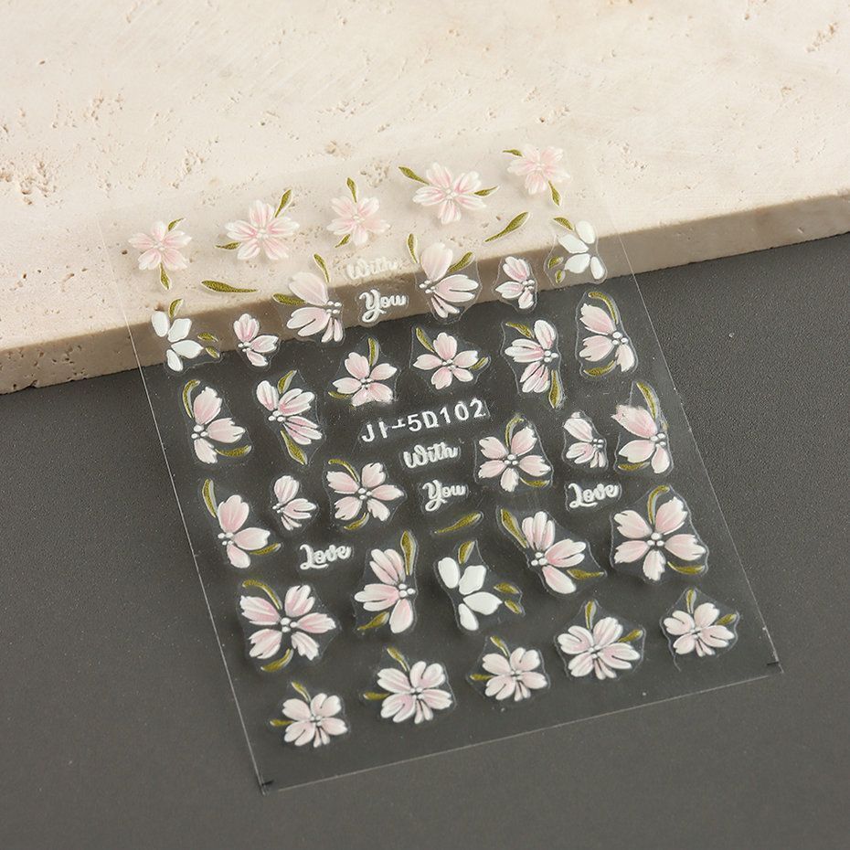网红山茶花5d浮雕美甲贴纸立体小清新冰花手绘立体美甲花花饰品贴