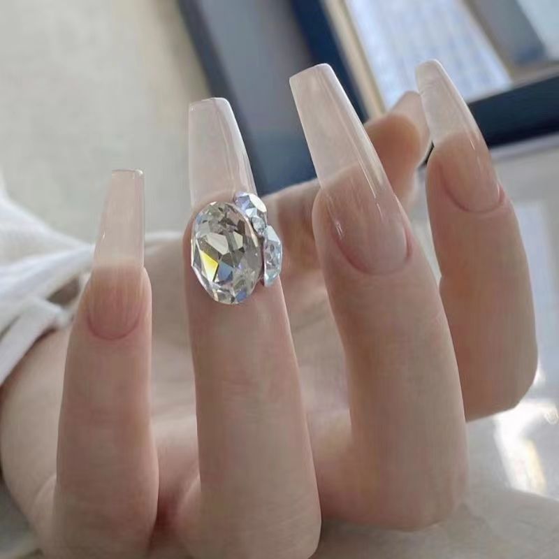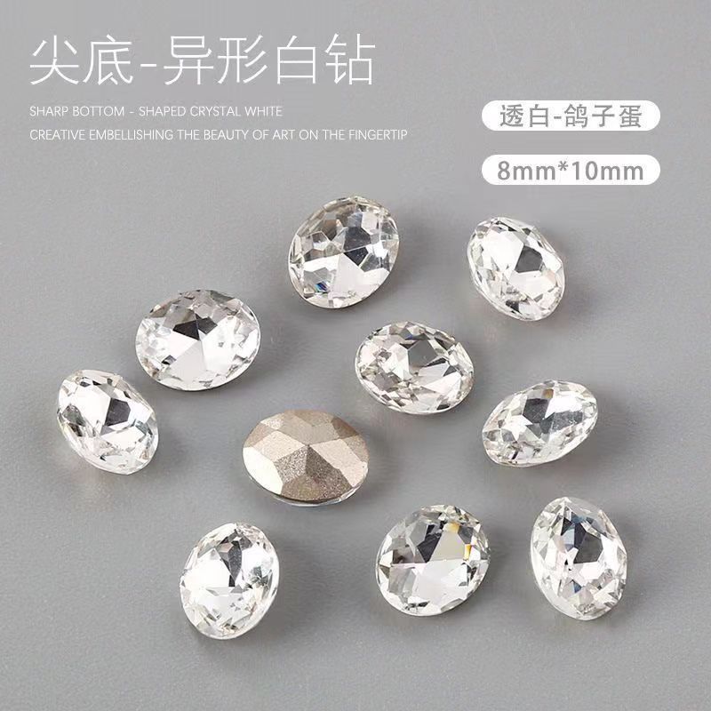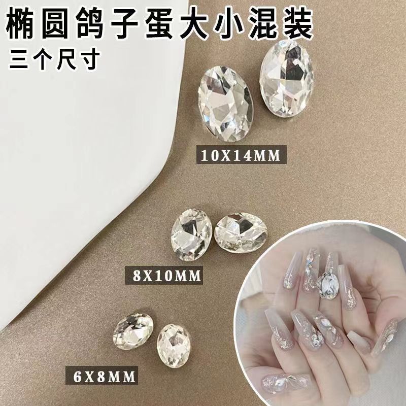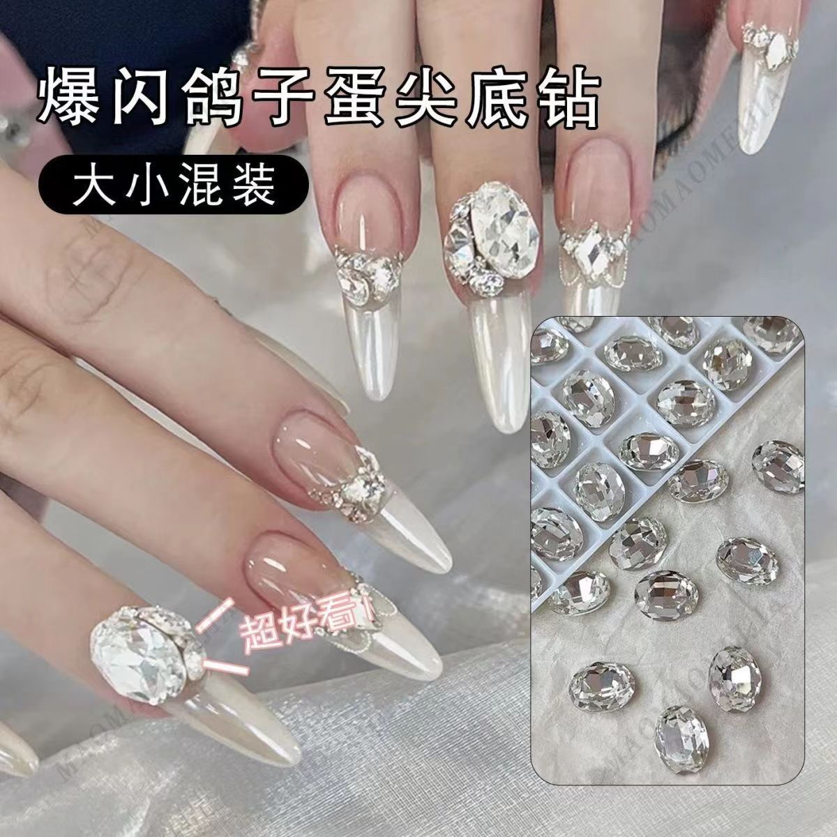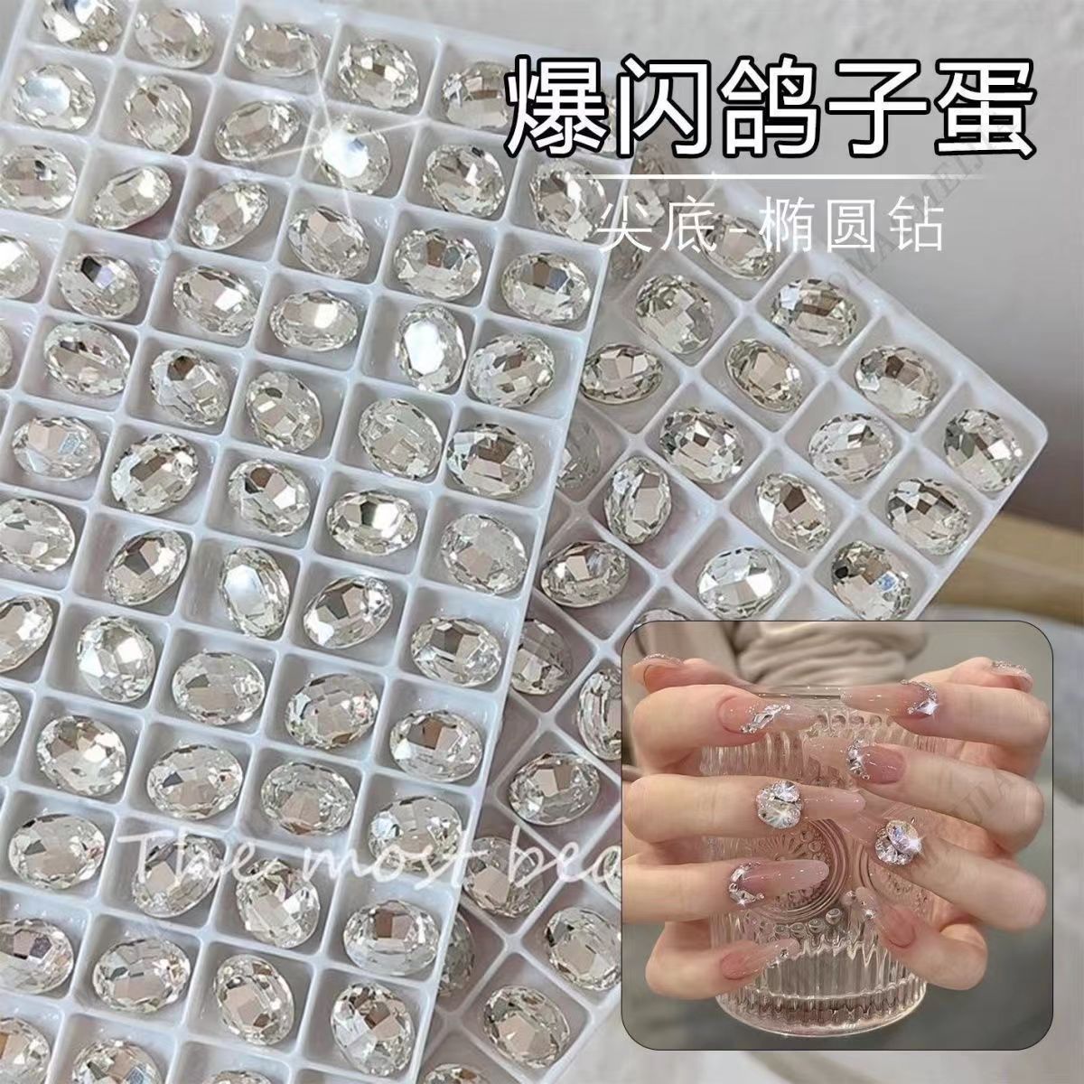网红爆款鸽子美甲饰品精品K9超闪椭圆异形透白尖底高品质指甲