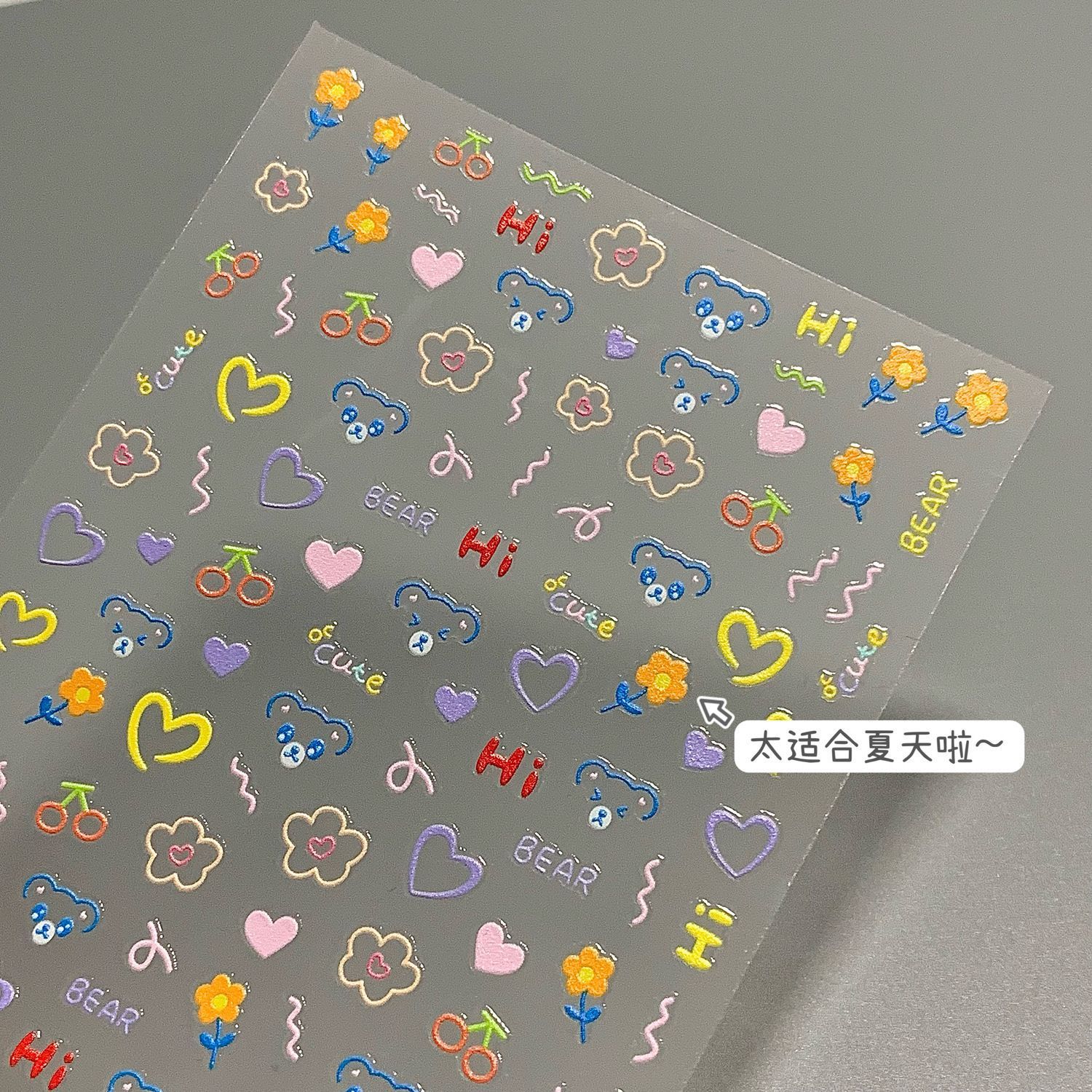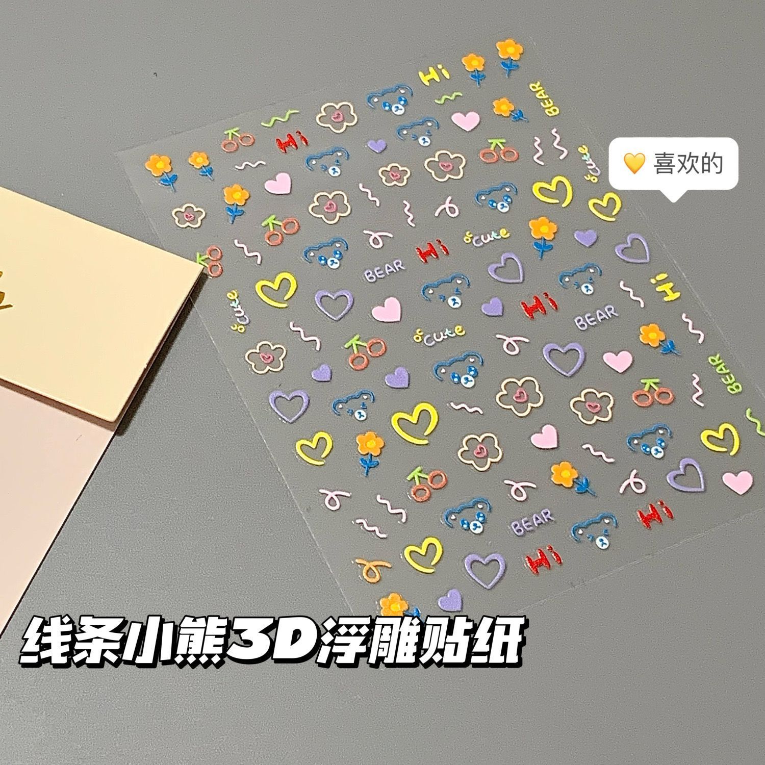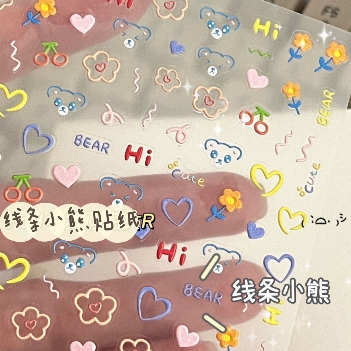 小红书同款童趣表情浮雕美甲贴纸可爱小熊美甲贴diy浮雕立体贴纸