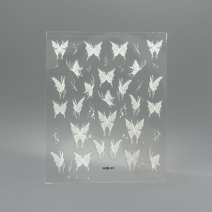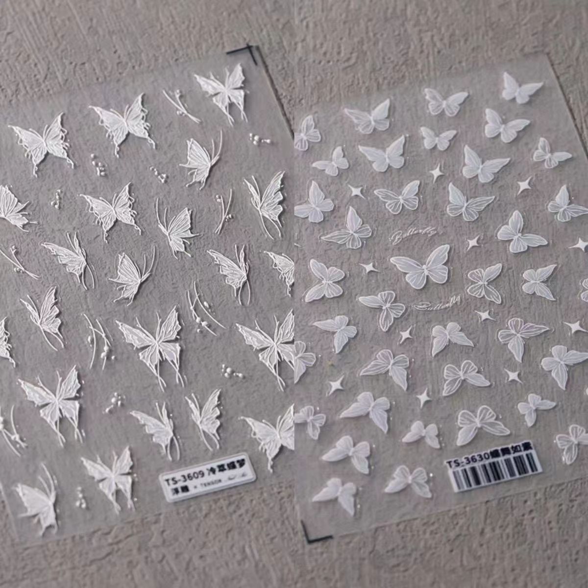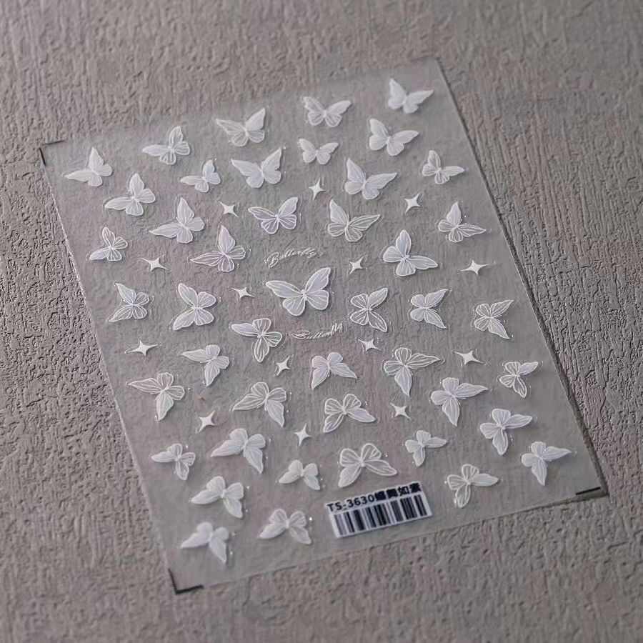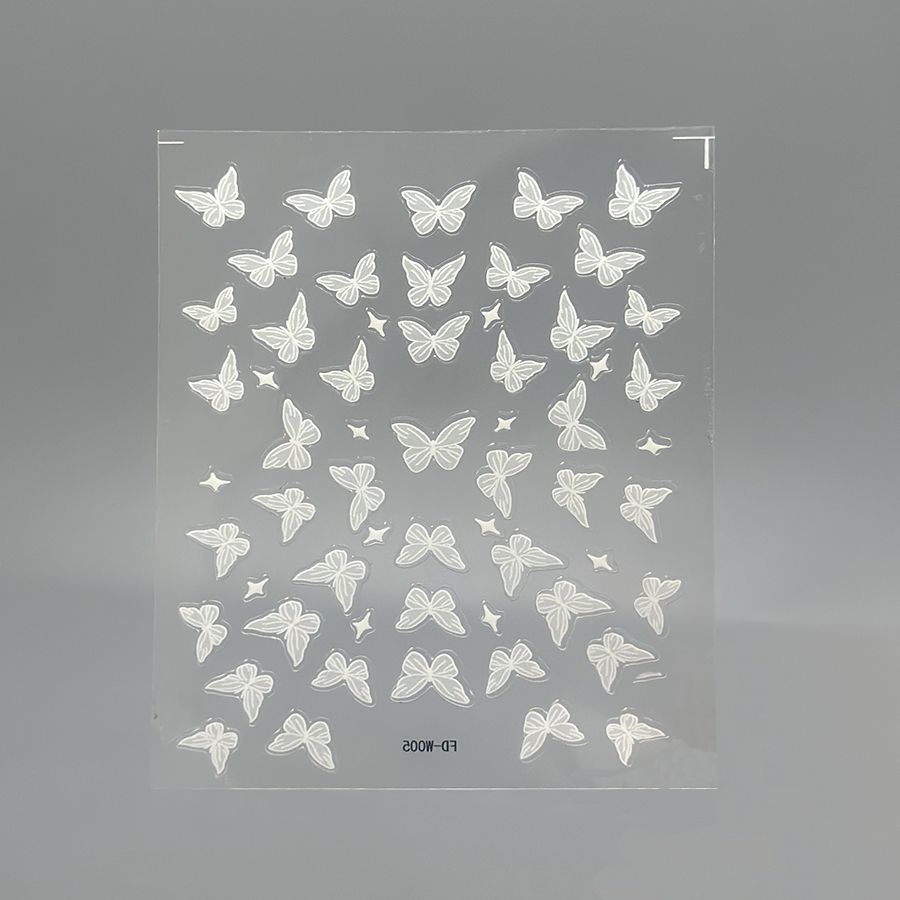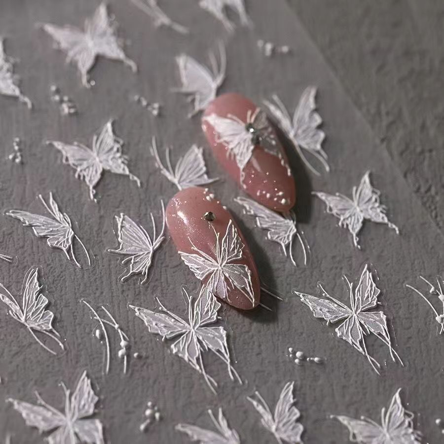网红新款美甲化蝶液态蝴蝶贴纸浮雕仙女薄韧白色小蝴蝶指甲贴装饰