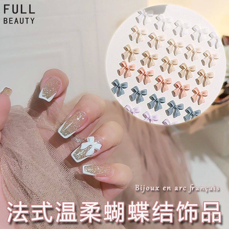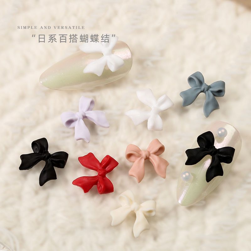 新款美甲蝴蝶结小饰品网红ins爆款日系磨砂指甲贴饰立体指甲装饰