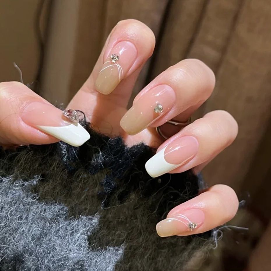 简约线条法式拉丝美甲贴纸 不规则线条星芒立体背胶甲油胶指甲贴