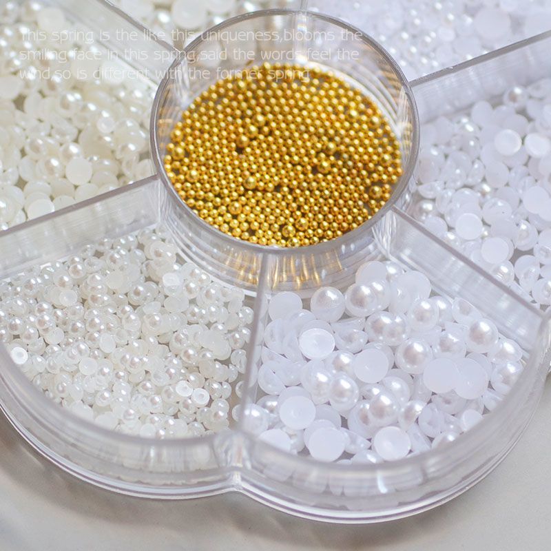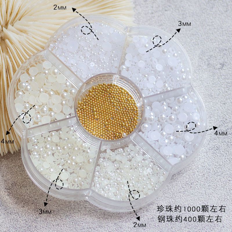 美甲珍珠饰品半圆小号迷你混装纯白钻饰立体大小钢珠百搭指甲装饰