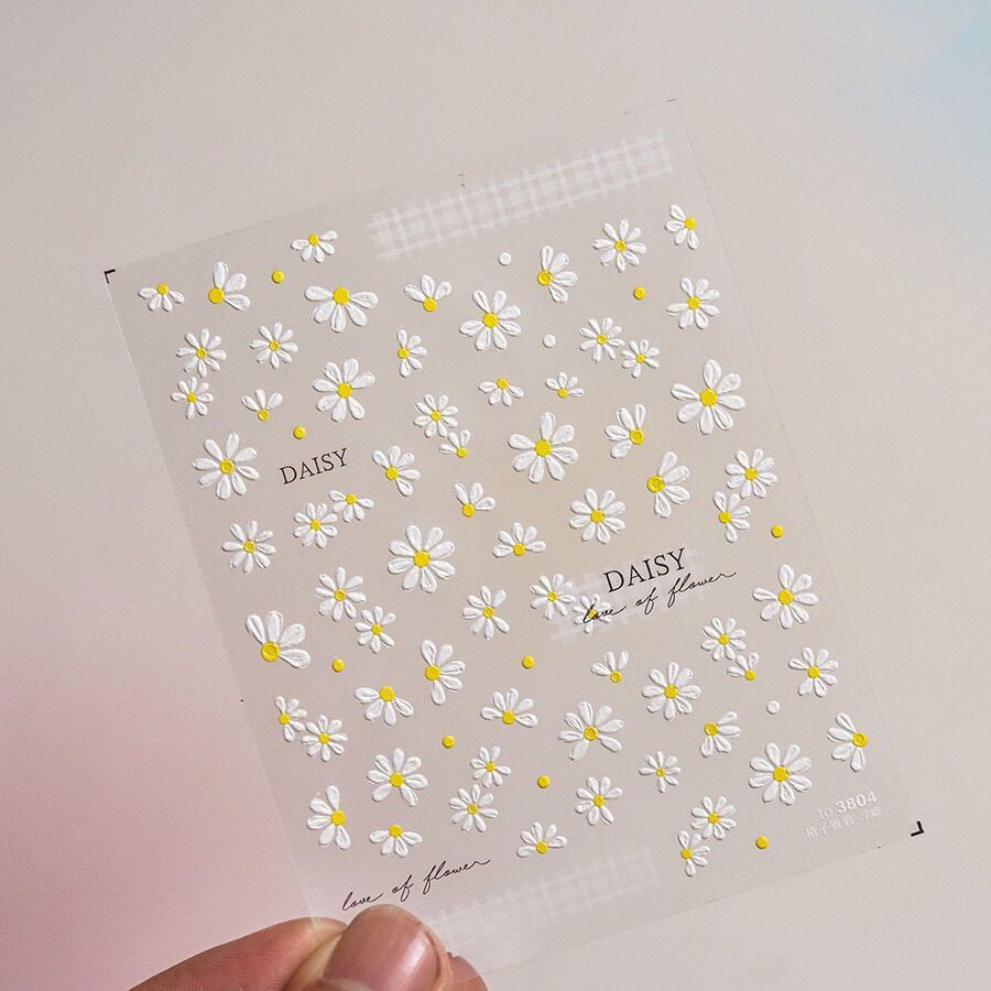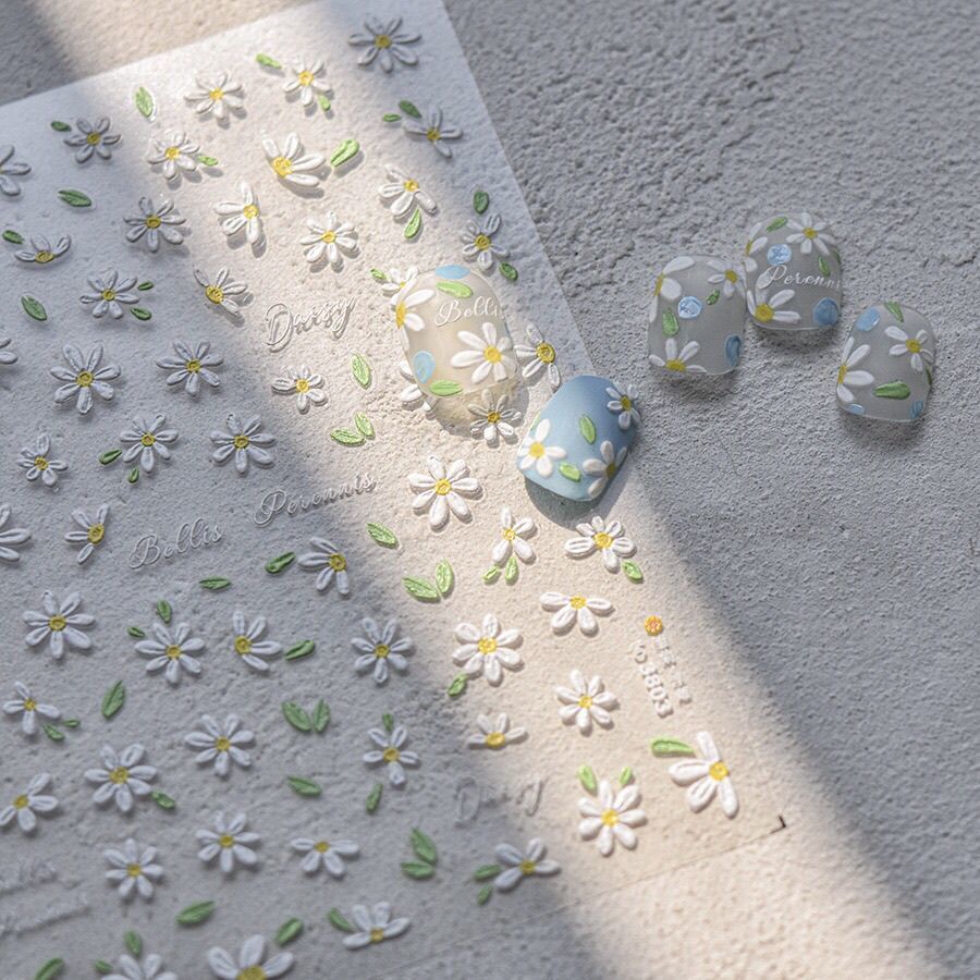 小清新春日雏菊美甲贴纸浮雕格子雏菊春暖花开浪漫美甲贴纸