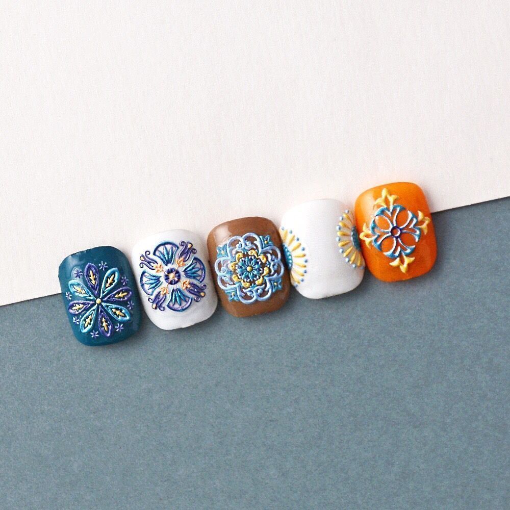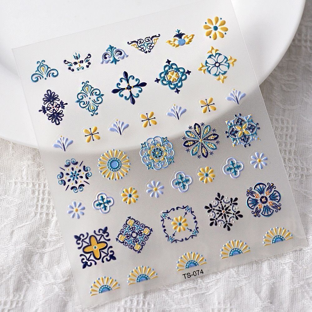 新款5D波西米亚民族风美甲贴纸浮雕立体彩绘印花小图案背胶指甲贴