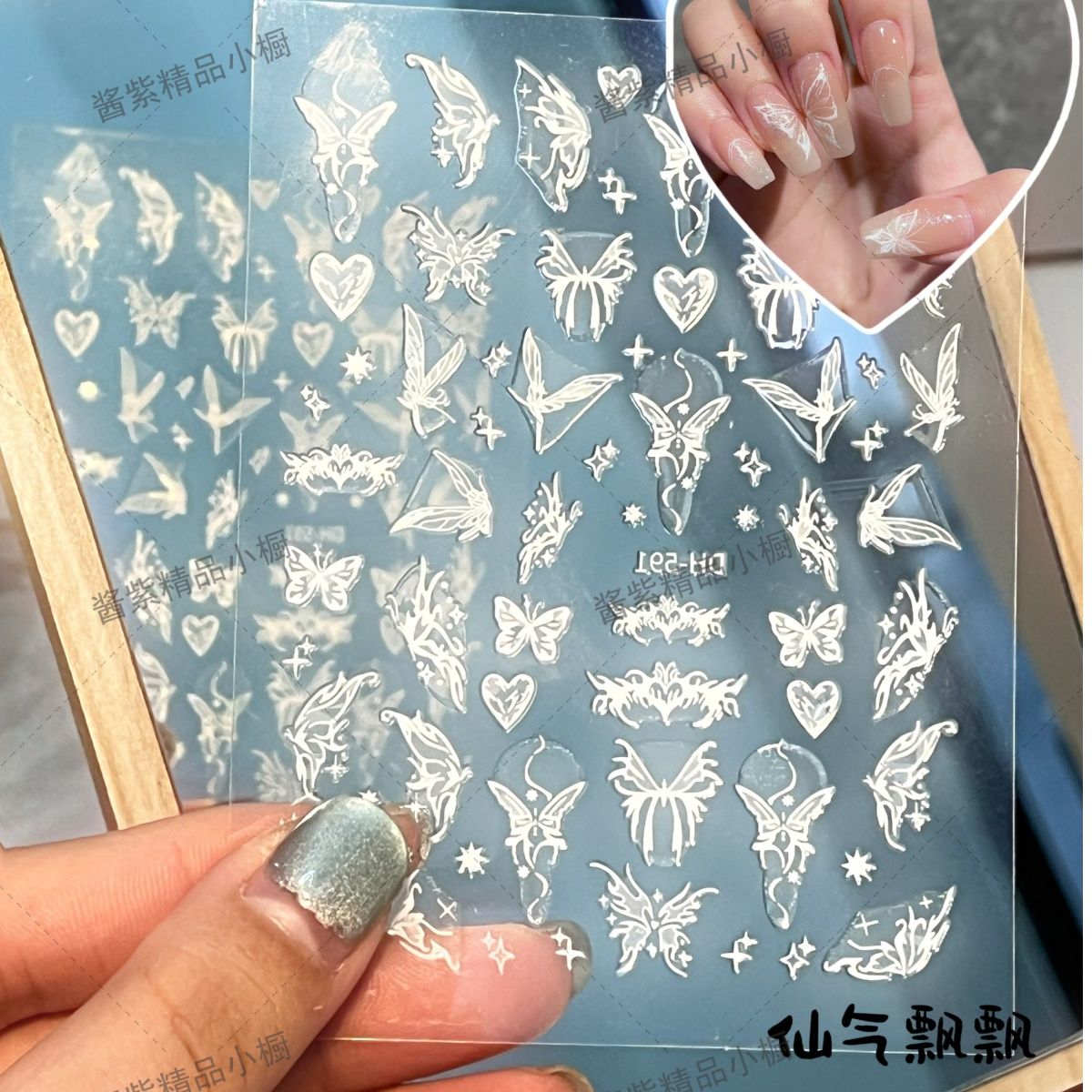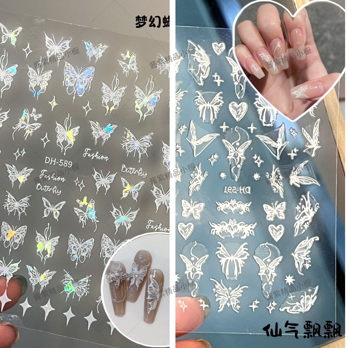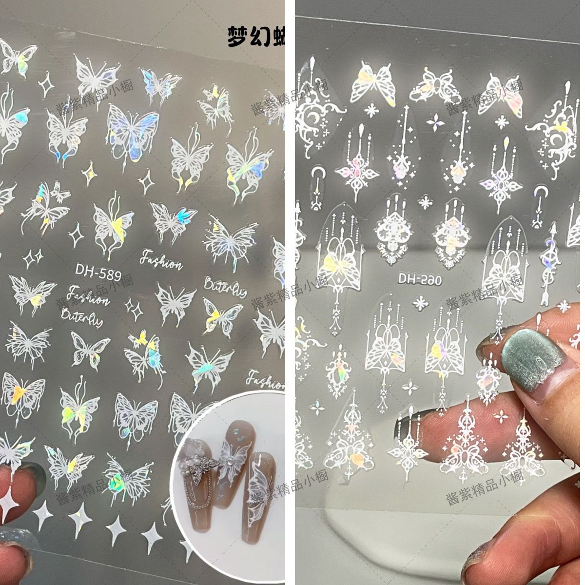 小红书ins爆款蝴蝶美甲仙女指甲贴网红透明液态冷感冰花背胶贴纸