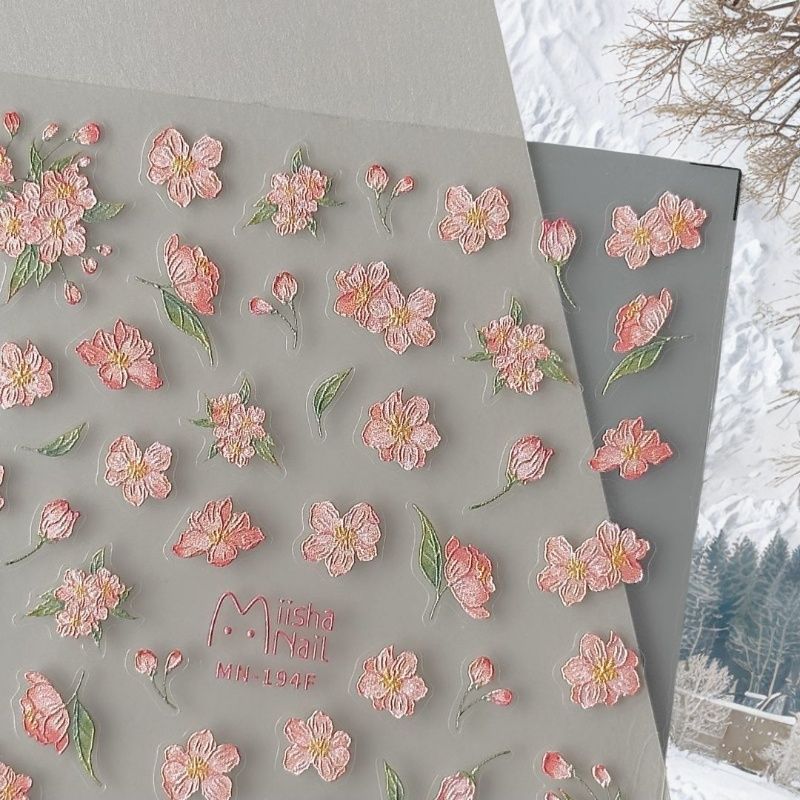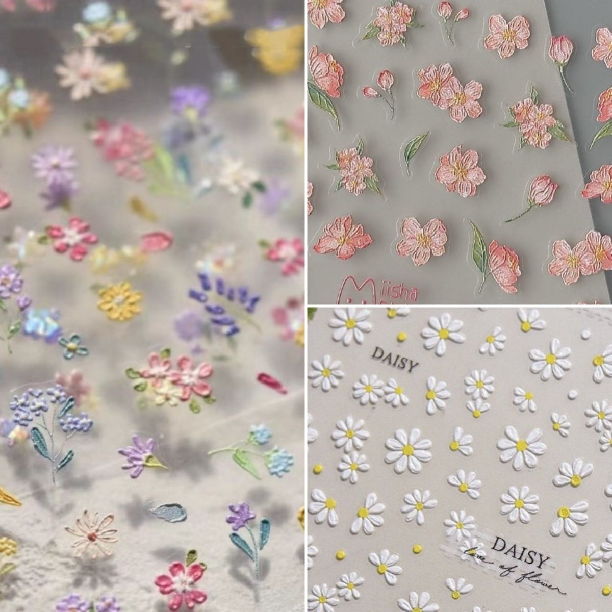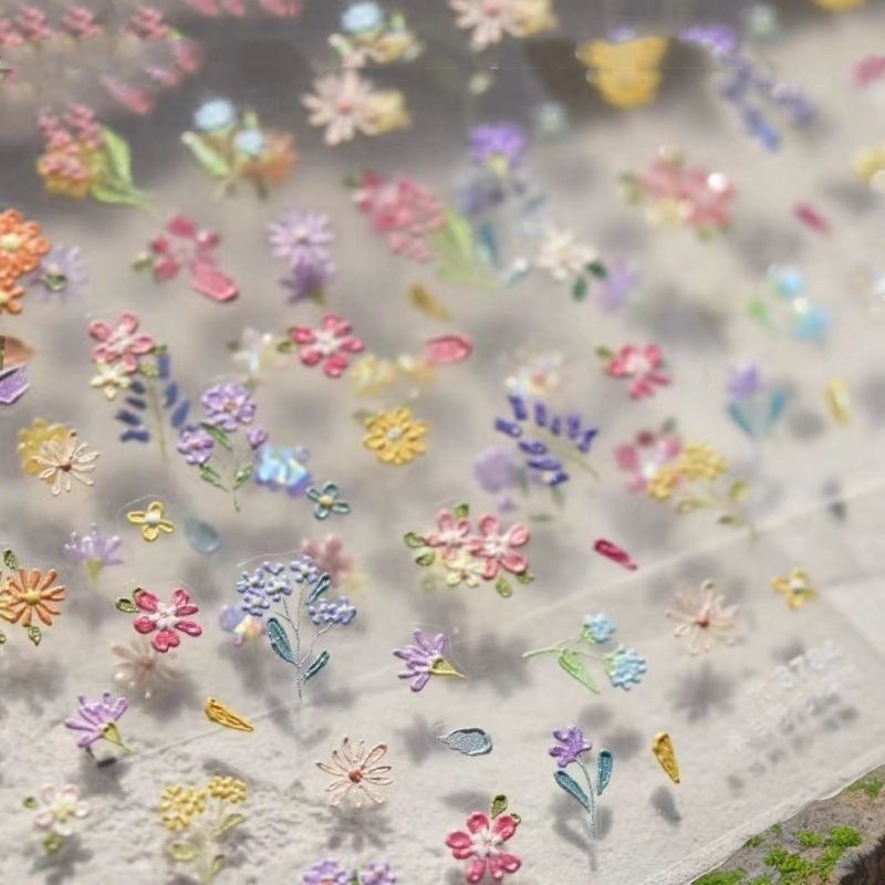 可爱新款花朵春日浮雕高颜值立体清新ins风素笔杆贴纸美甲贴纸