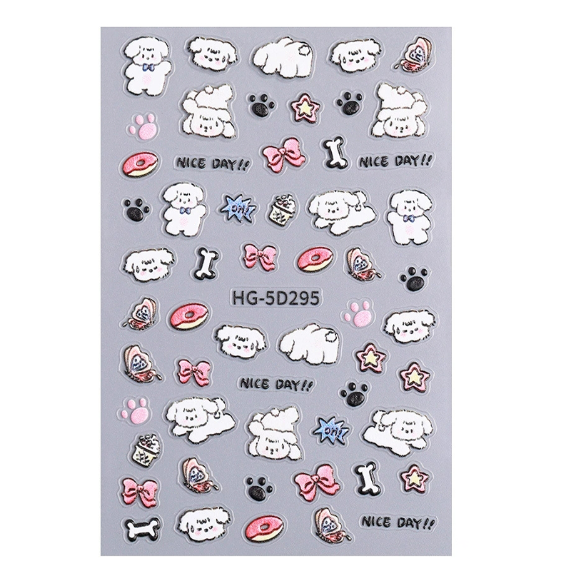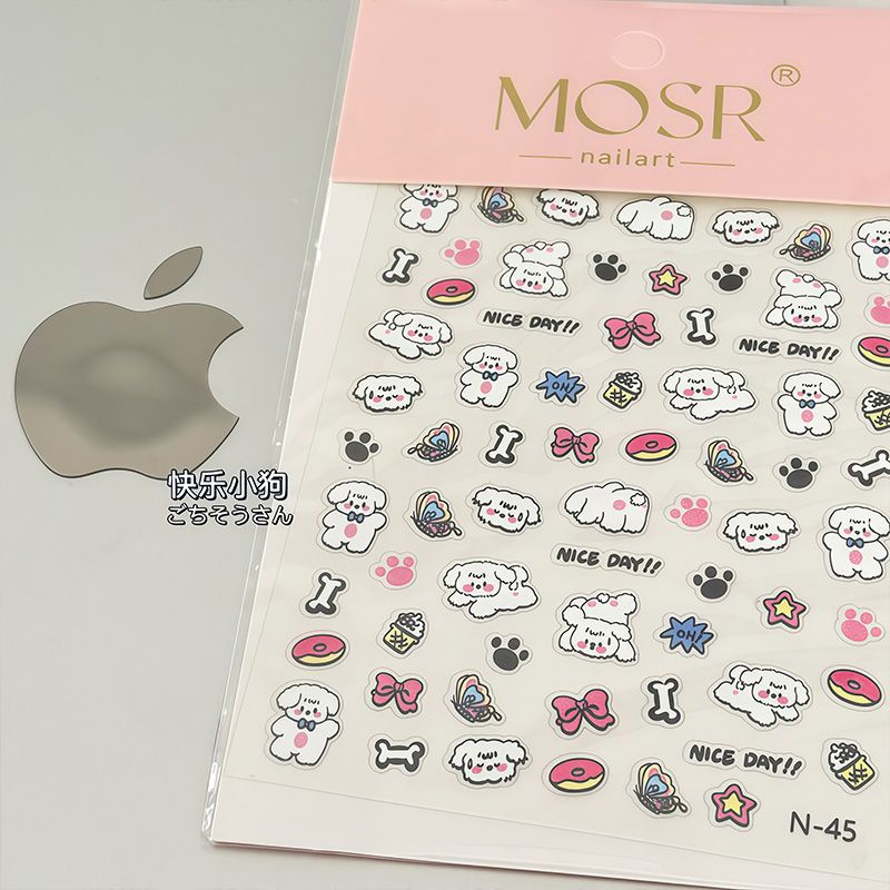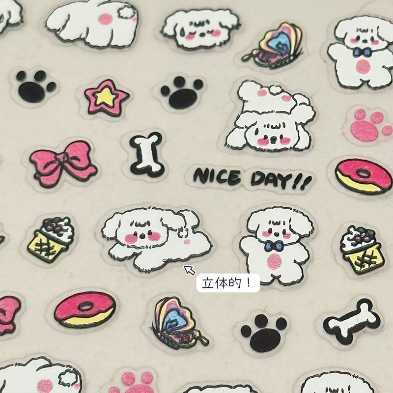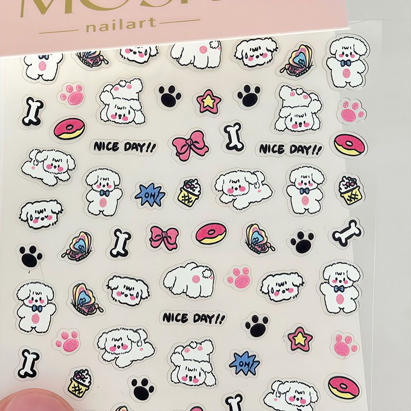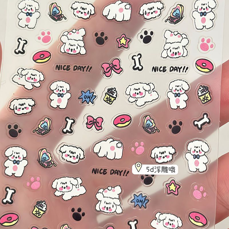 涂鸦小狗浮雕立体美甲贴纸日系可爱ins指甲贴卡通童趣快乐小狗diy