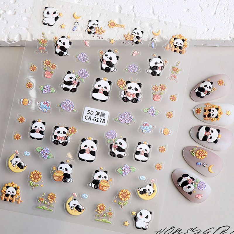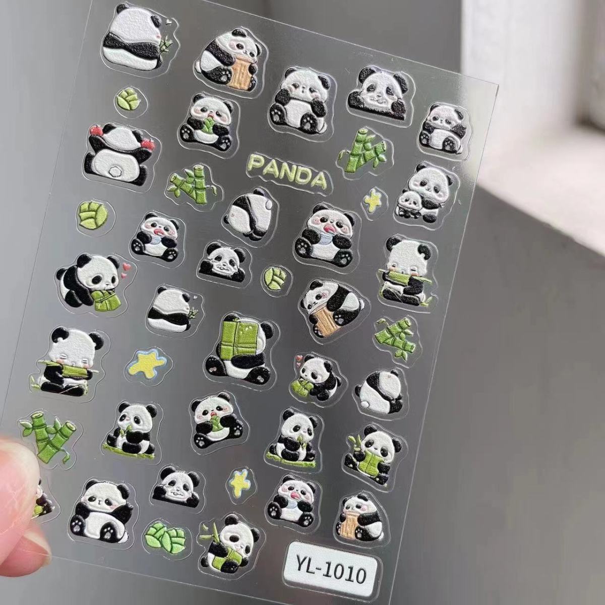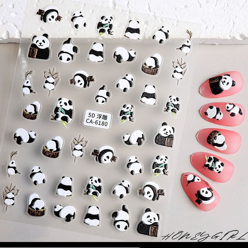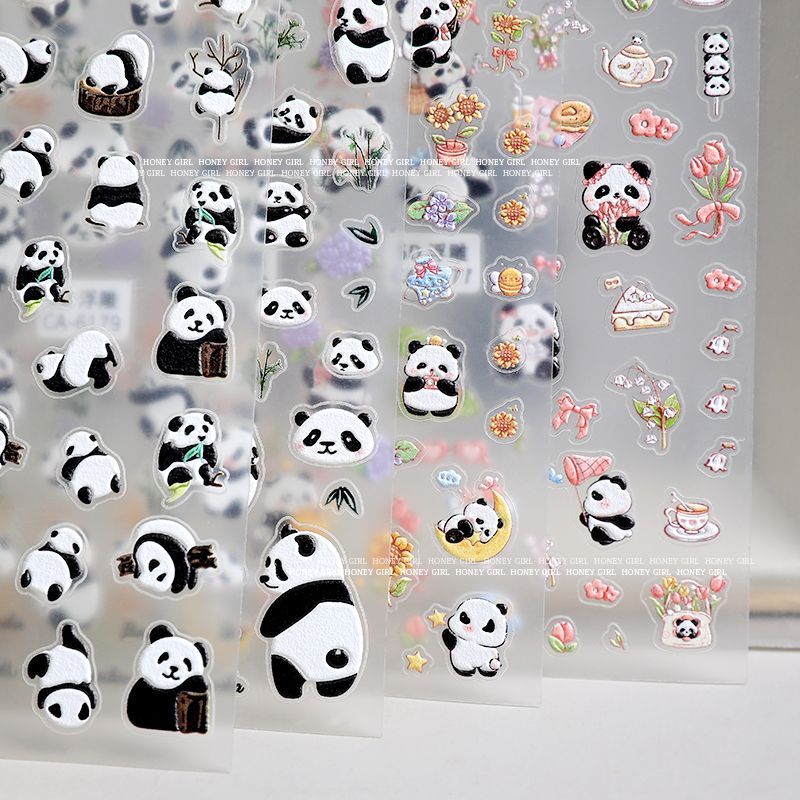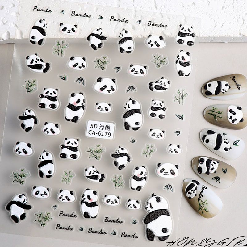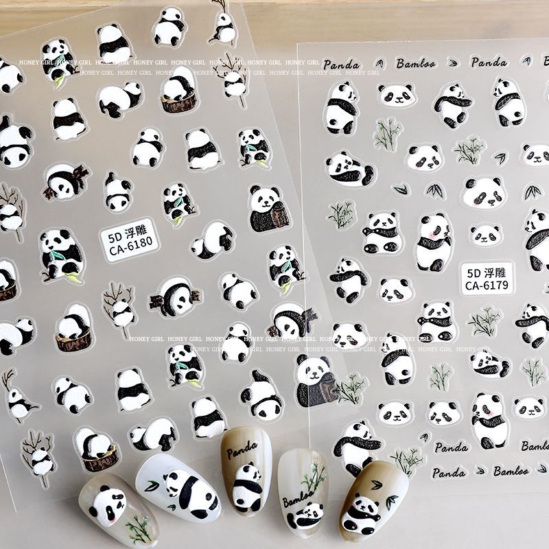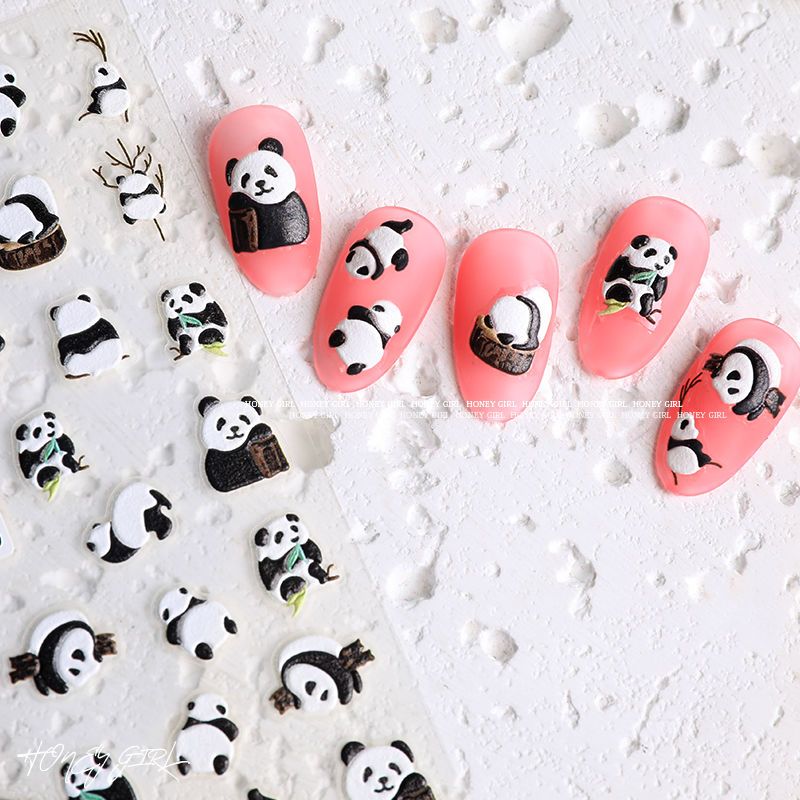 竹子熊猫美甲贴纸浮雕可爱熊猫团子青竹萌宠熊猫呆萌童趣美甲贴纸