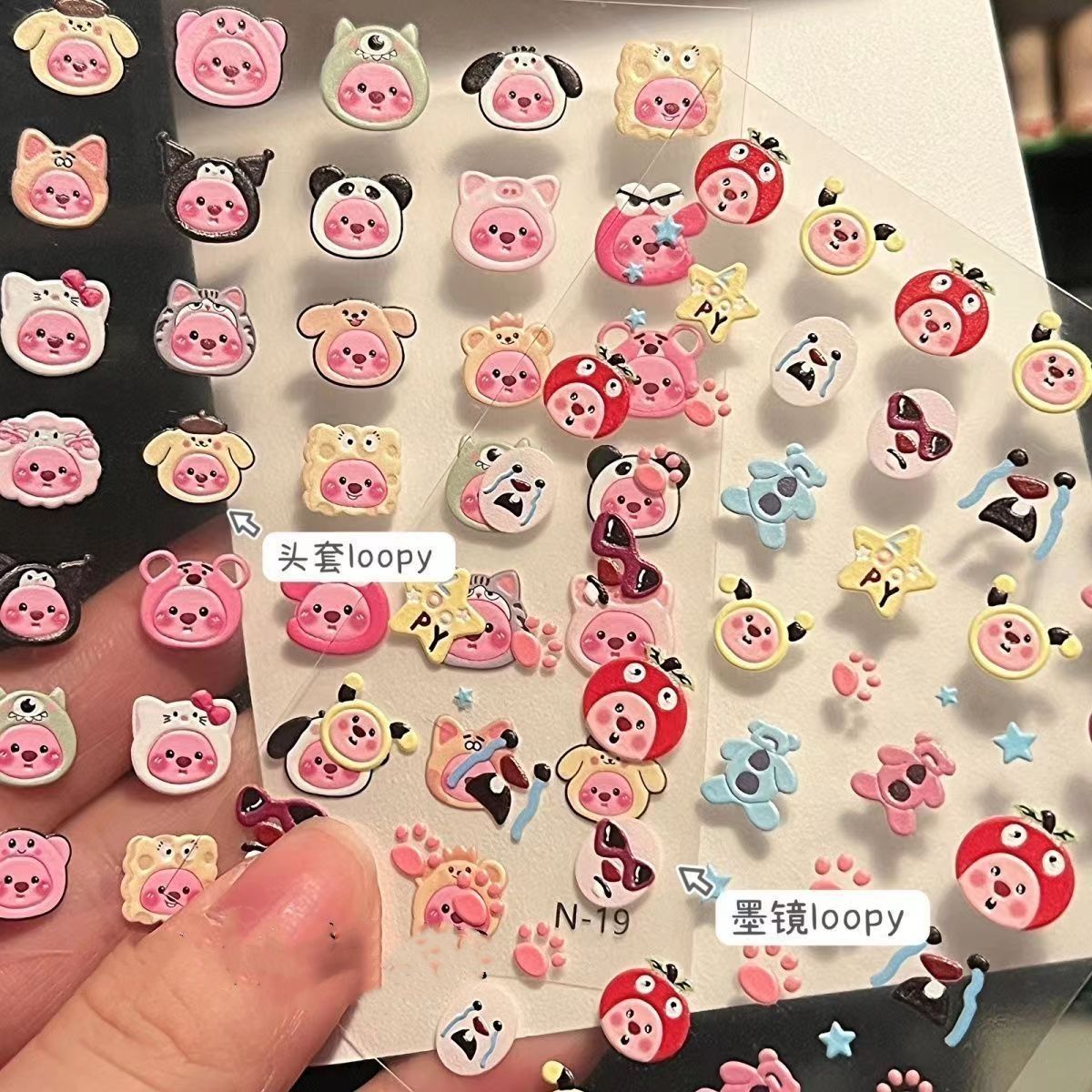 小红书卡通可爱loopy海狸露比浮雕立体美甲贴手机指甲笔杆贴防水
