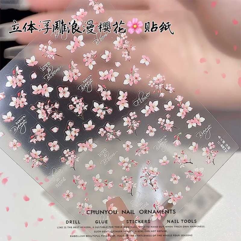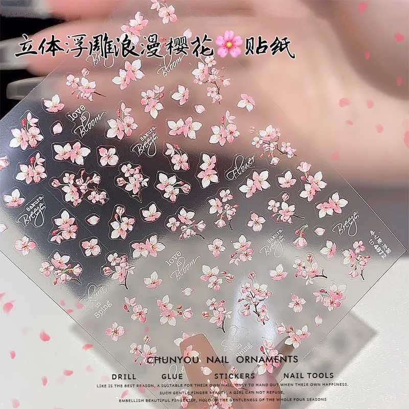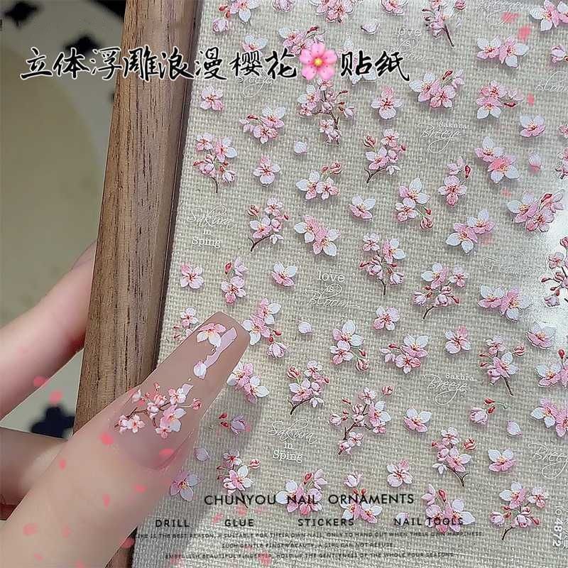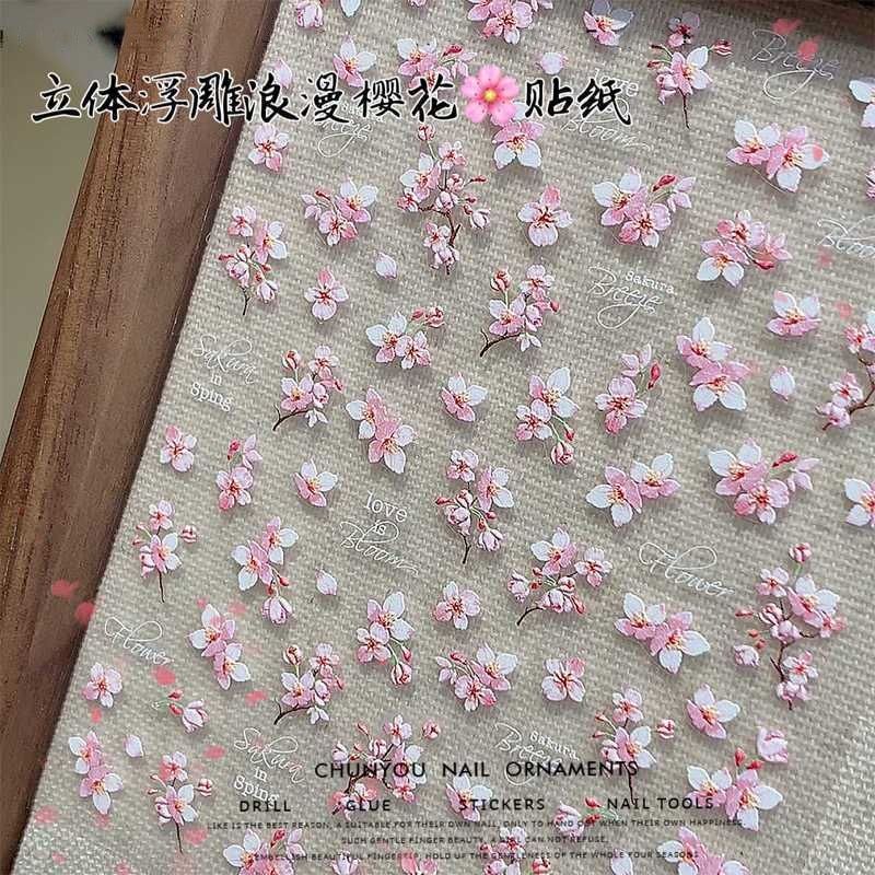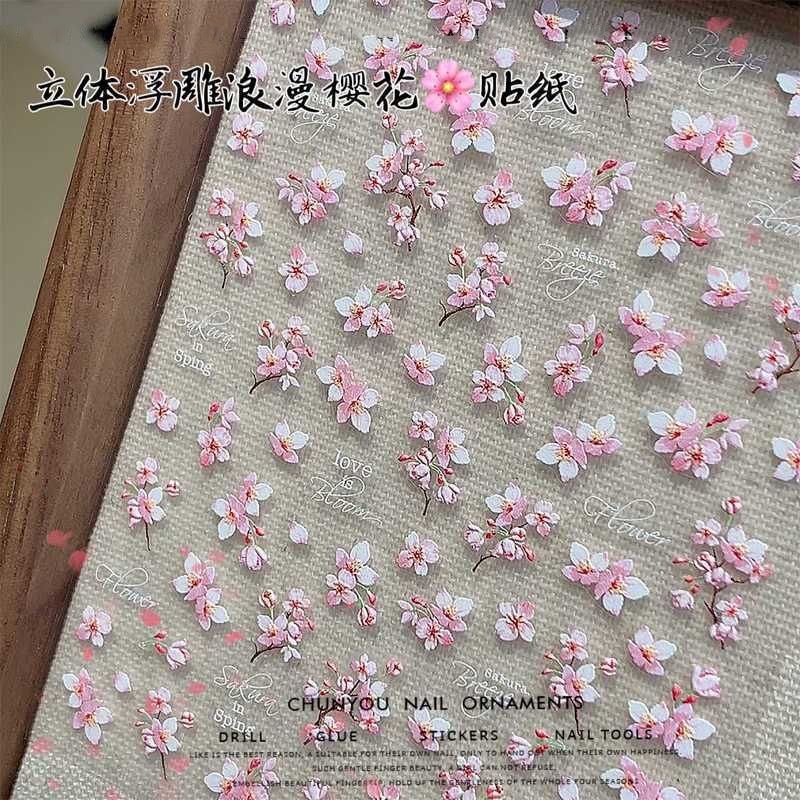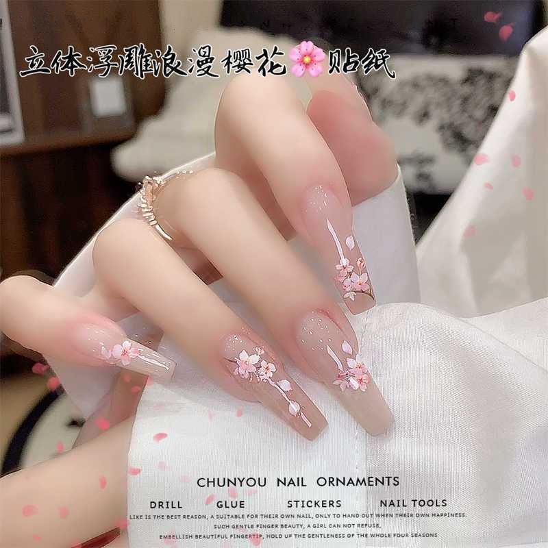 美甲新款樱花贴纸春之樱立体浮雕贴花粉嫩少女心桃花春天指甲贴纸