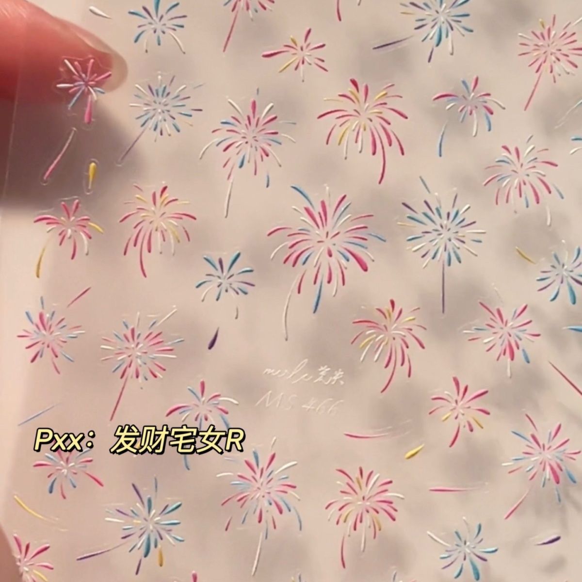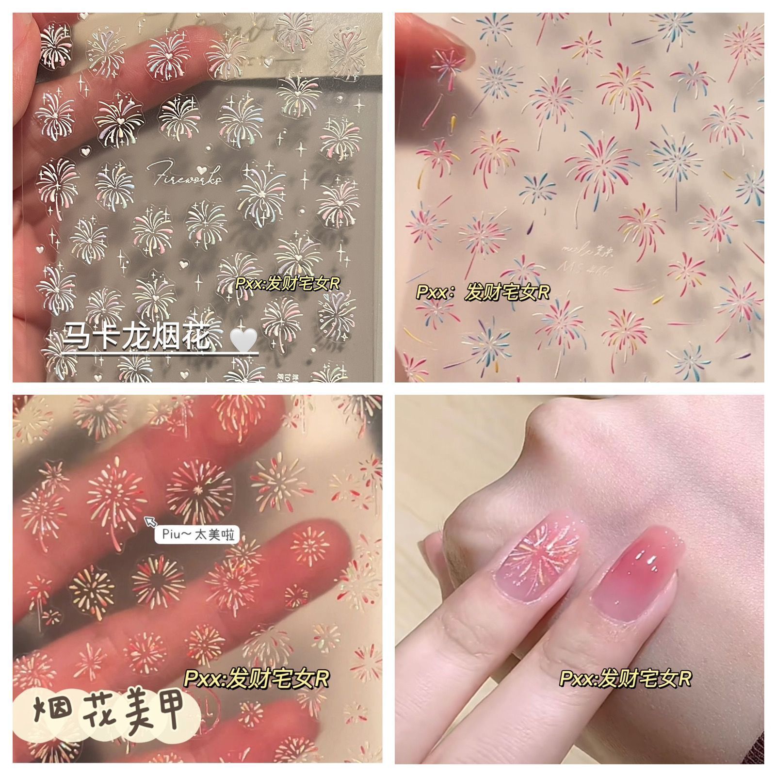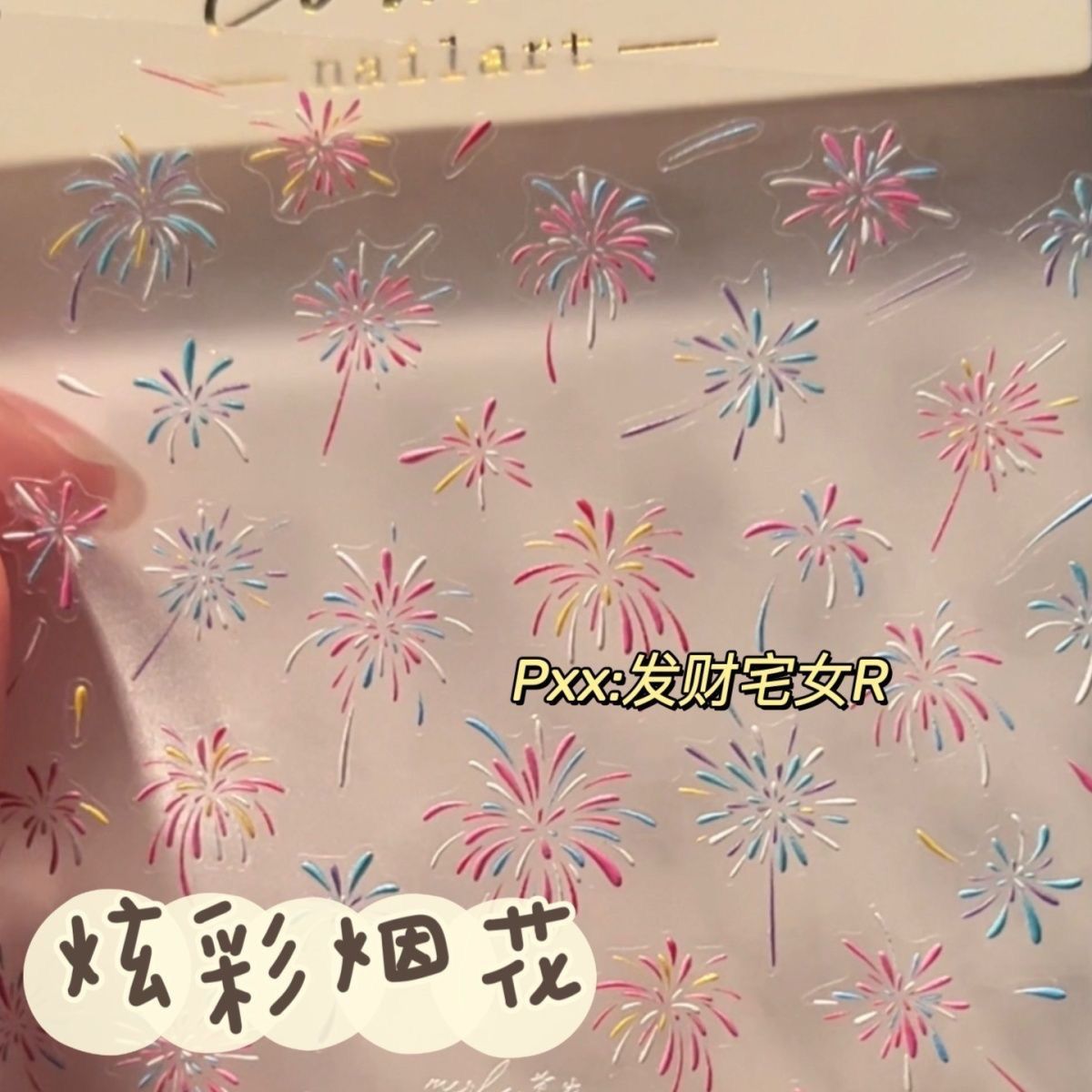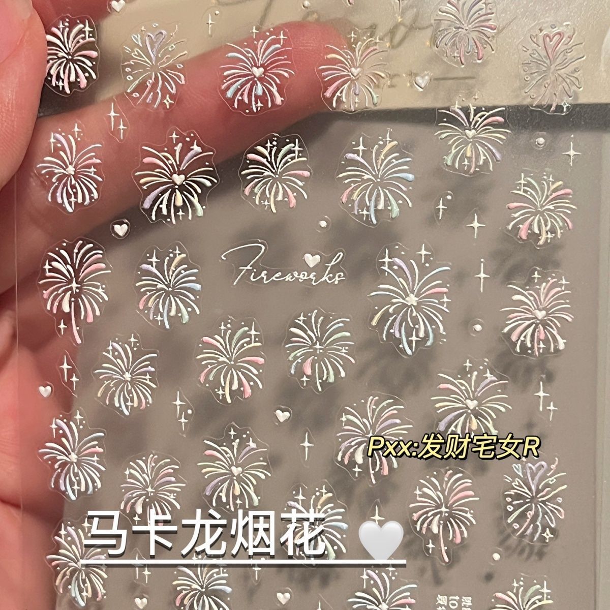 网红爆款马卡龙烟花浮雕美甲贴纸tomoni手绘涂鸦贴画背胶指甲贴花