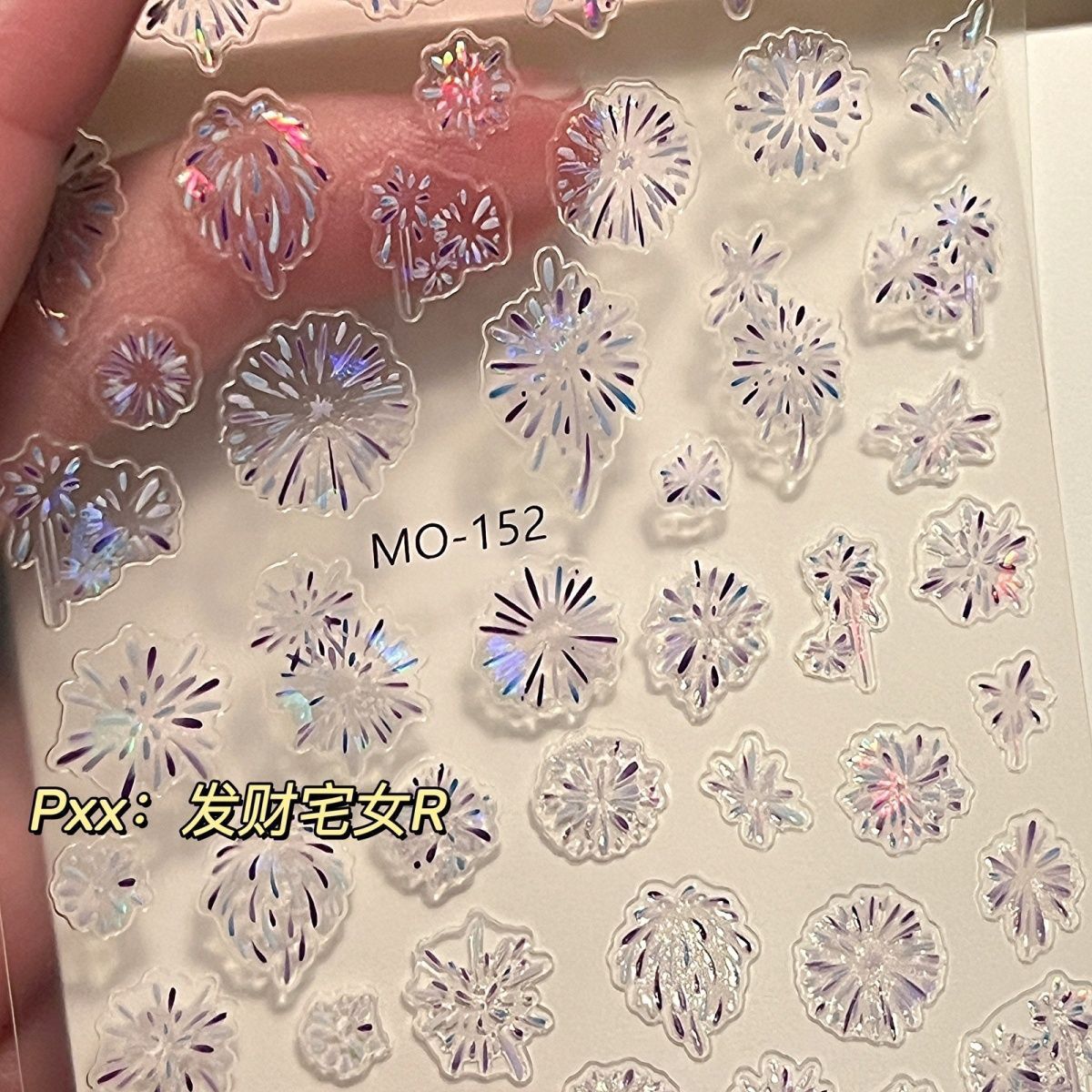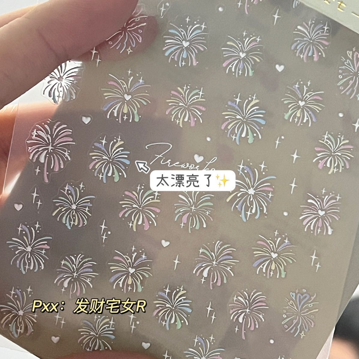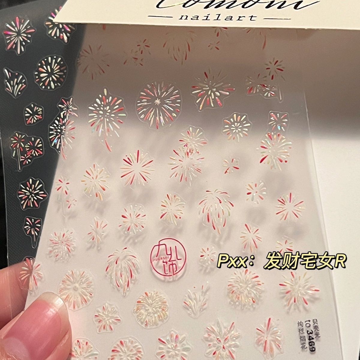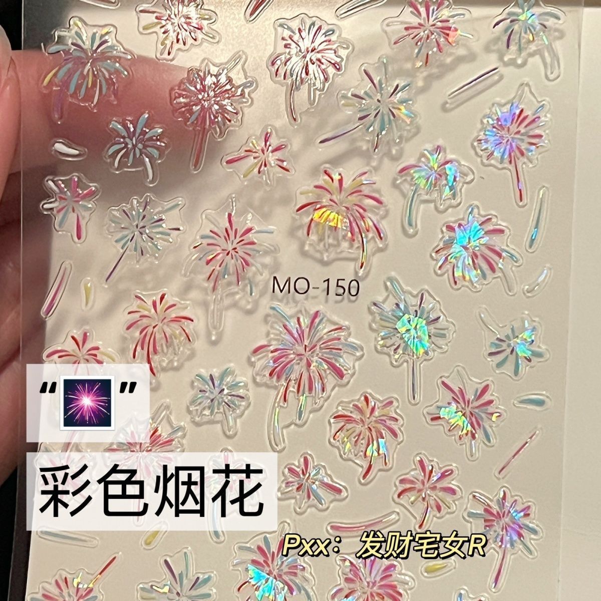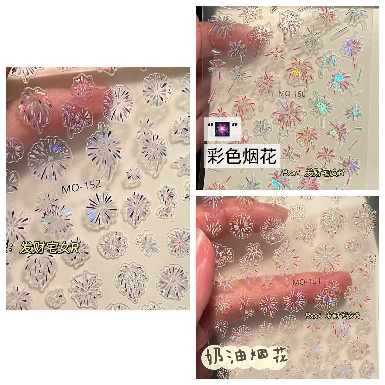 网红爆款马卡龙烟花浮雕美甲贴纸tomoni手绘涂鸦贴画背胶指甲贴花