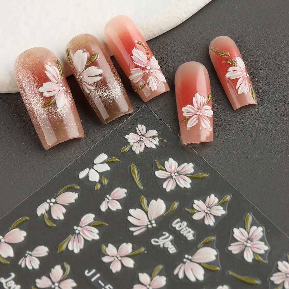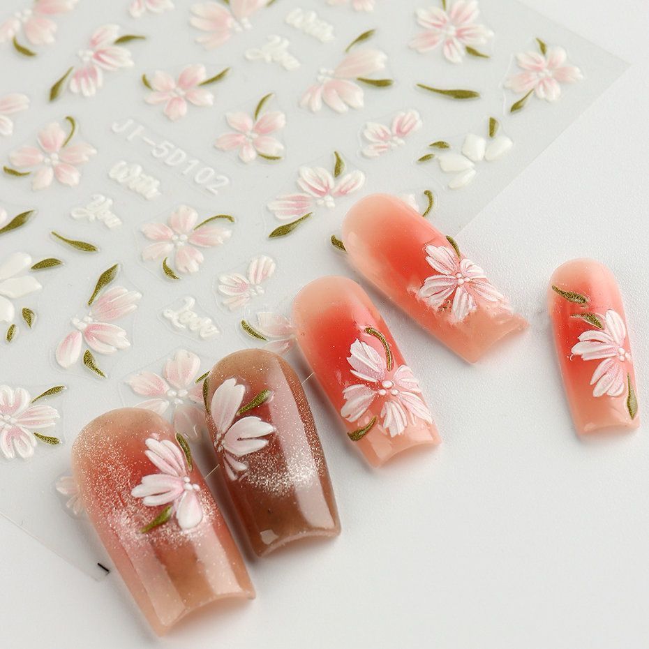 新款山茶花5d浮雕美甲贴纸立体小清新冰花手绘立体美甲花花饰品贴