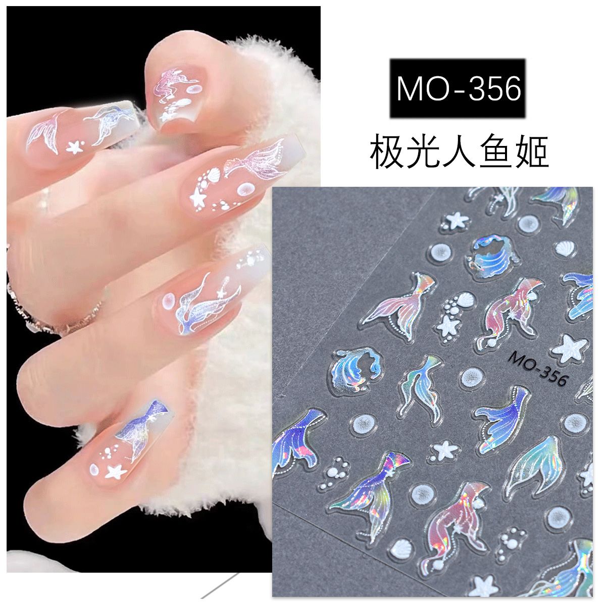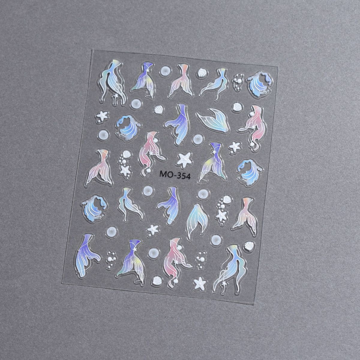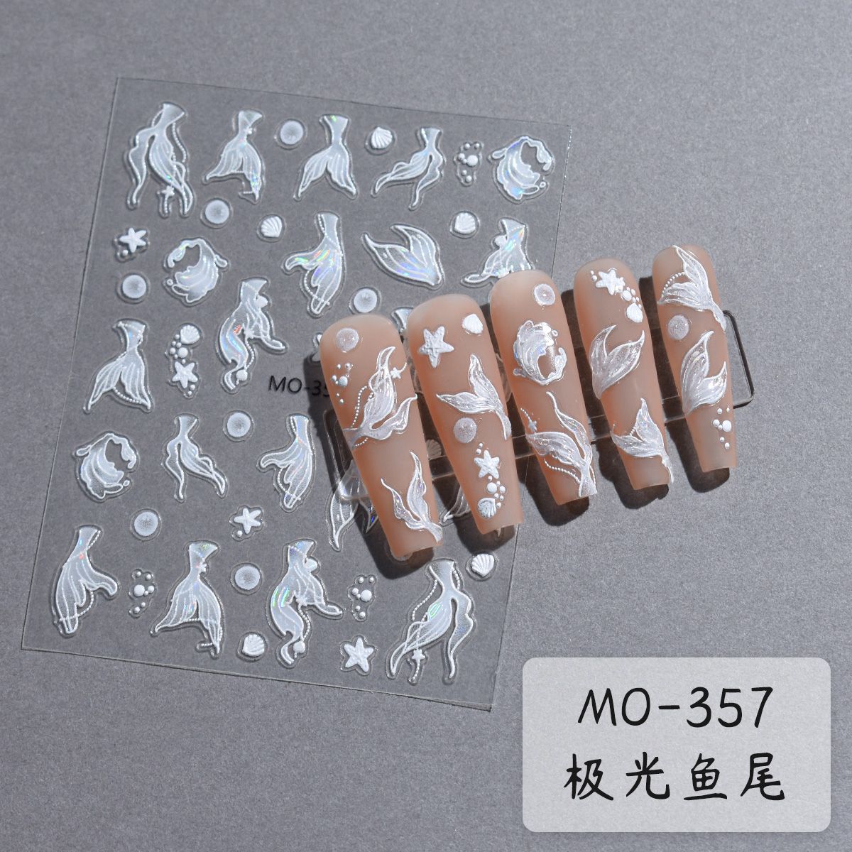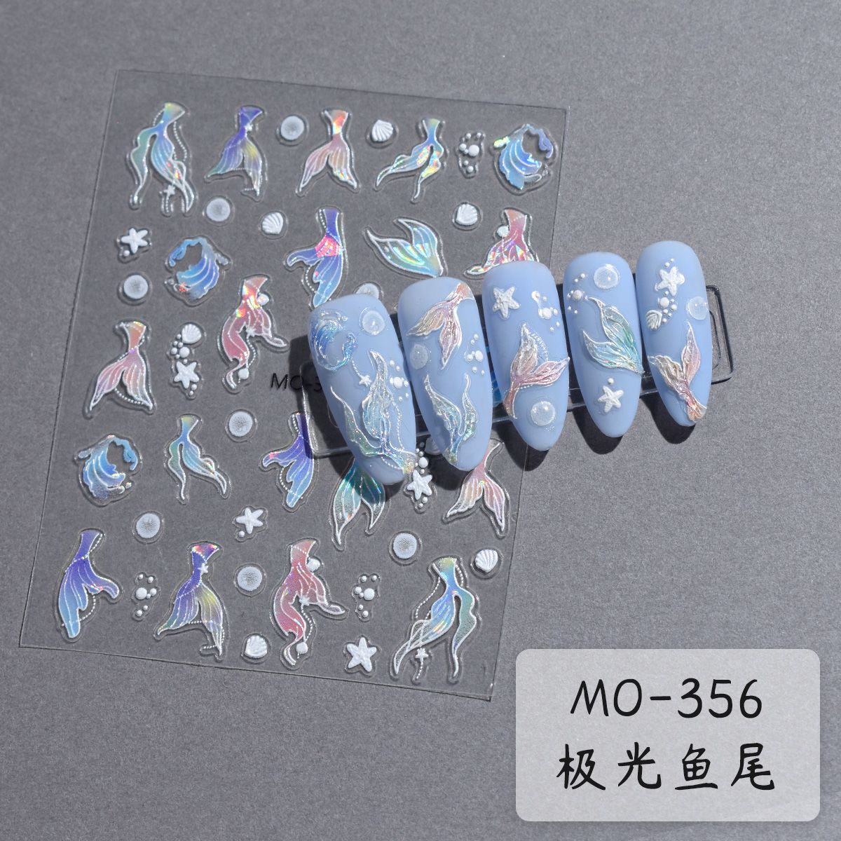 小红书极光人鱼贴网红贝壳蝴蝶浮雕极光贴纸幻彩琉璃鱼尾美甲指甲