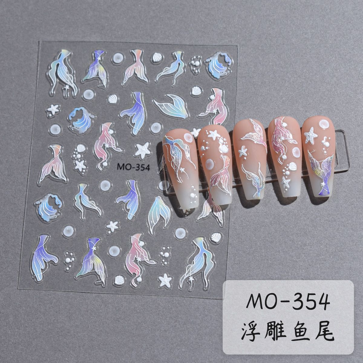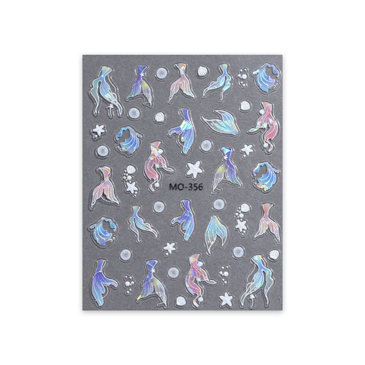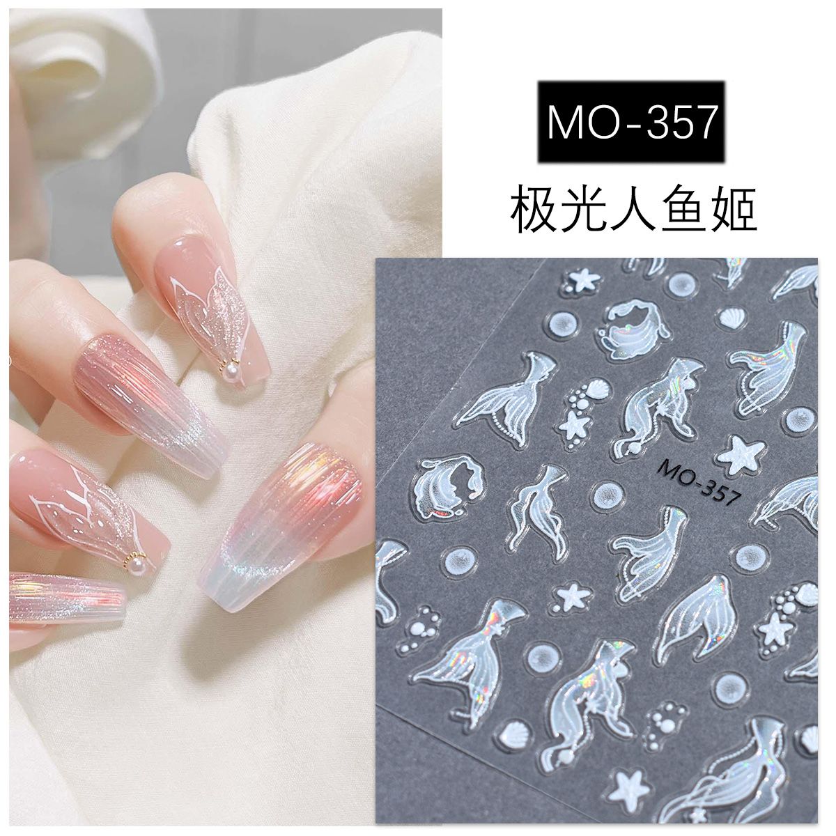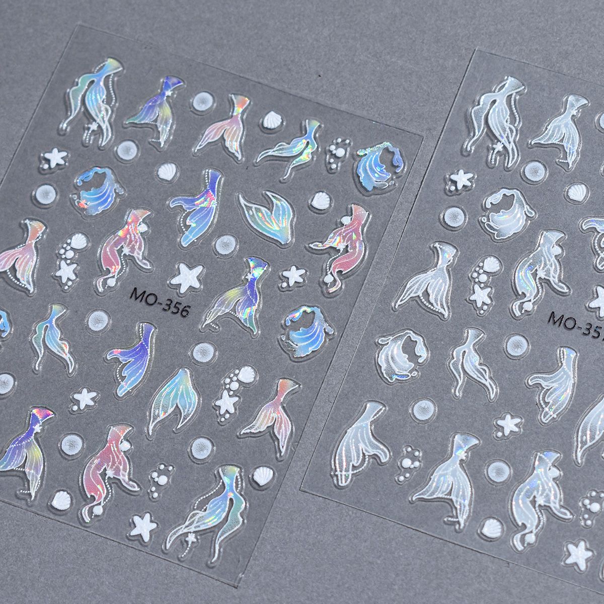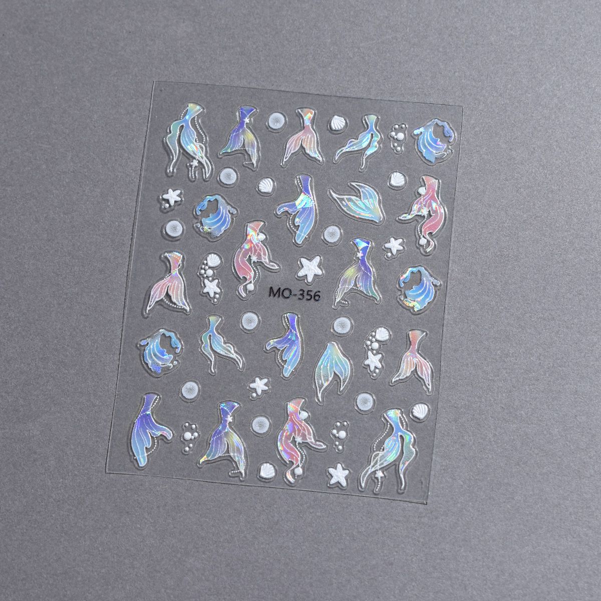 小红书极光人鱼贴网红贝壳蝴蝶浮雕极光贴纸幻彩琉璃鱼尾美甲指甲