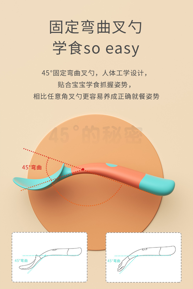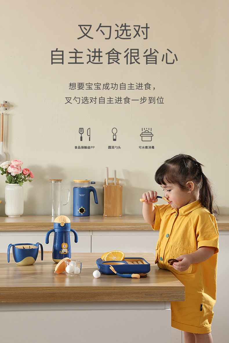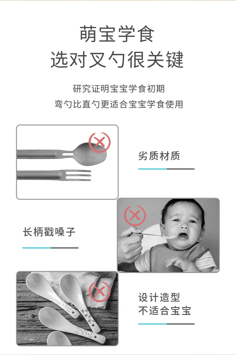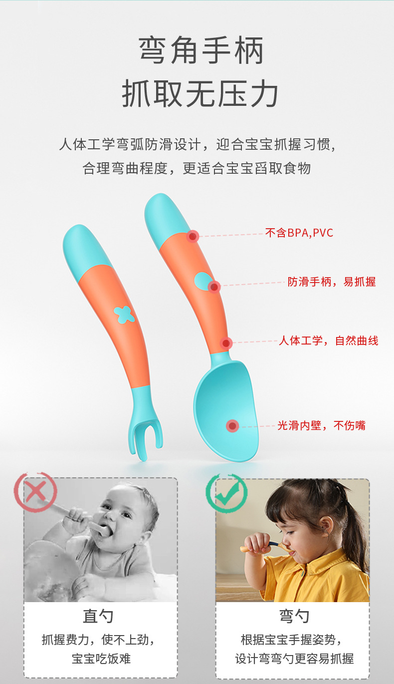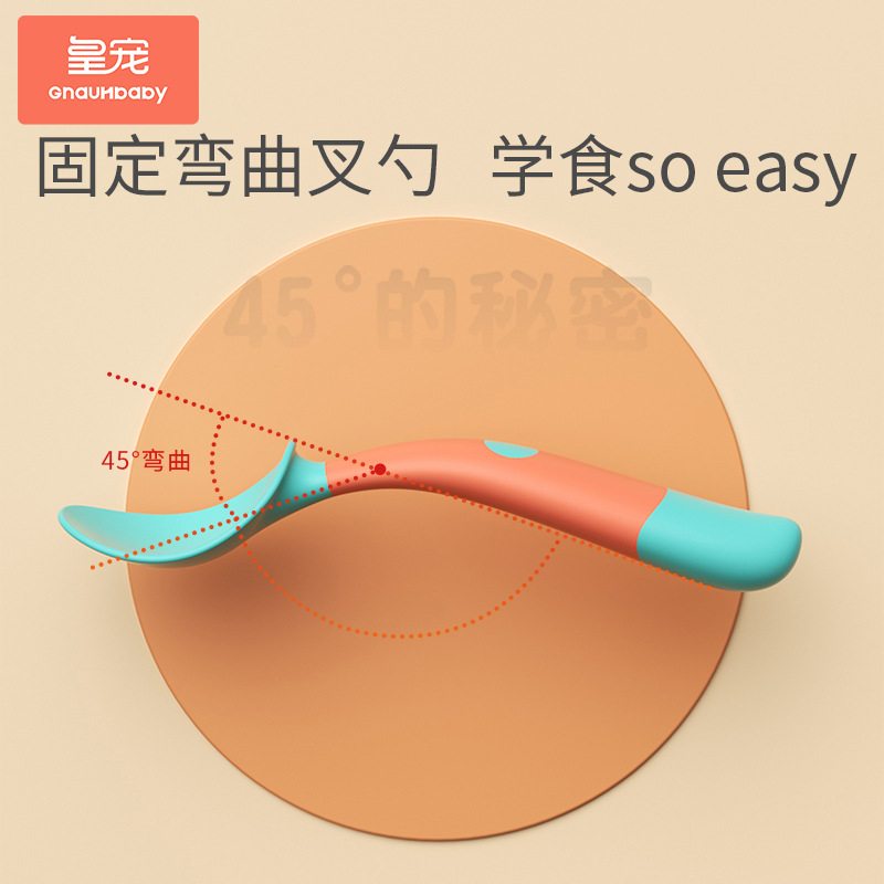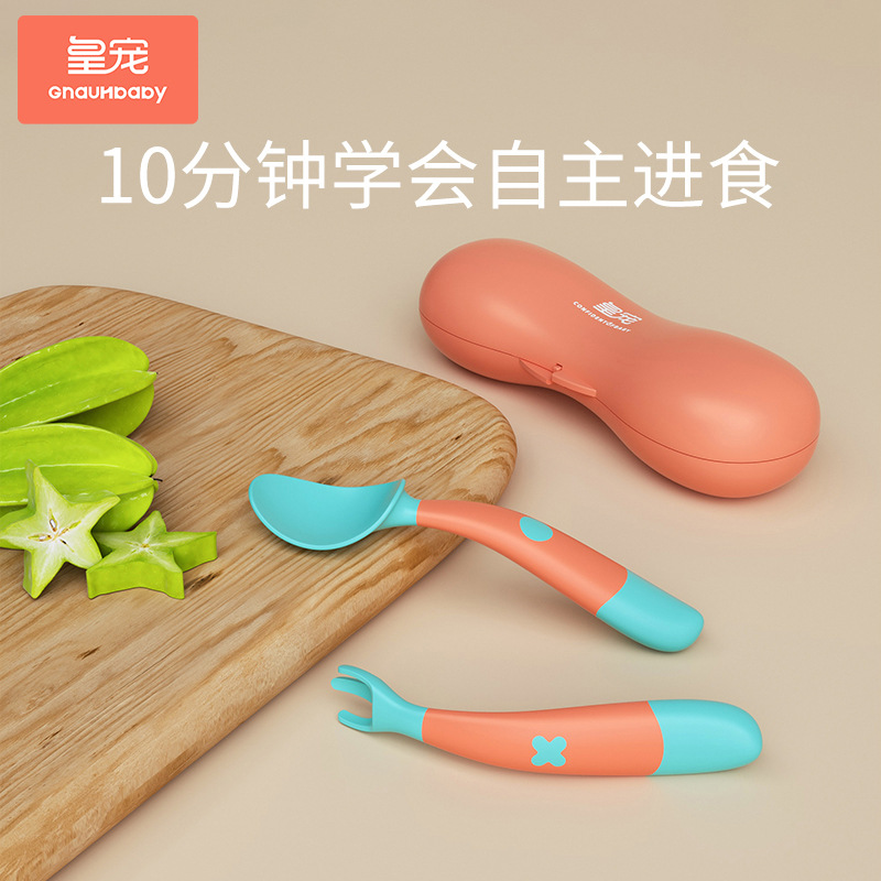 皇宠宝宝辅食勺婴儿训练叉勺儿童吃饭勺子叉子自主进食餐具套装