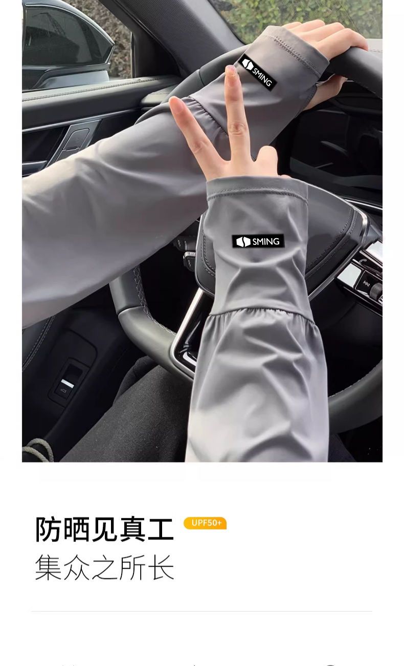 凉感冰袖男款防晒夏季防紫外线冰丝袖套骑行护臂宽松大码开车手袖