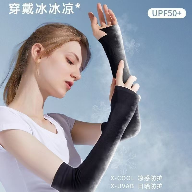 冰丝防晒袖套夏季女防紫外线透气冰袖男户外骑行薄款速干手套开车